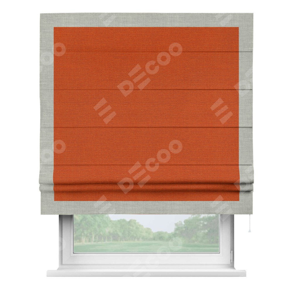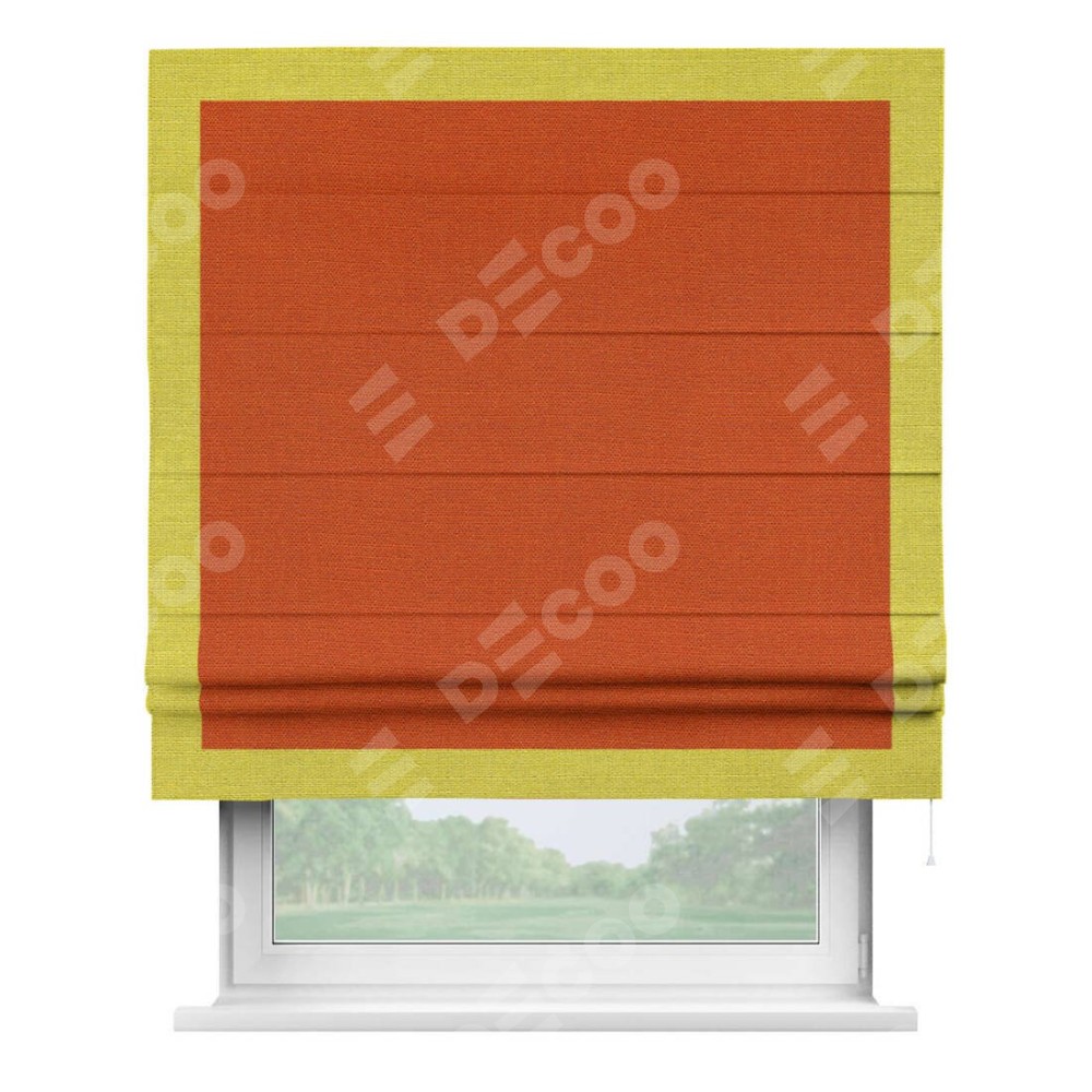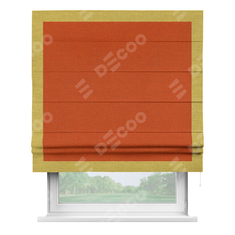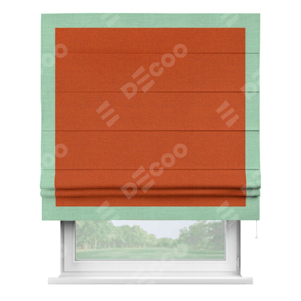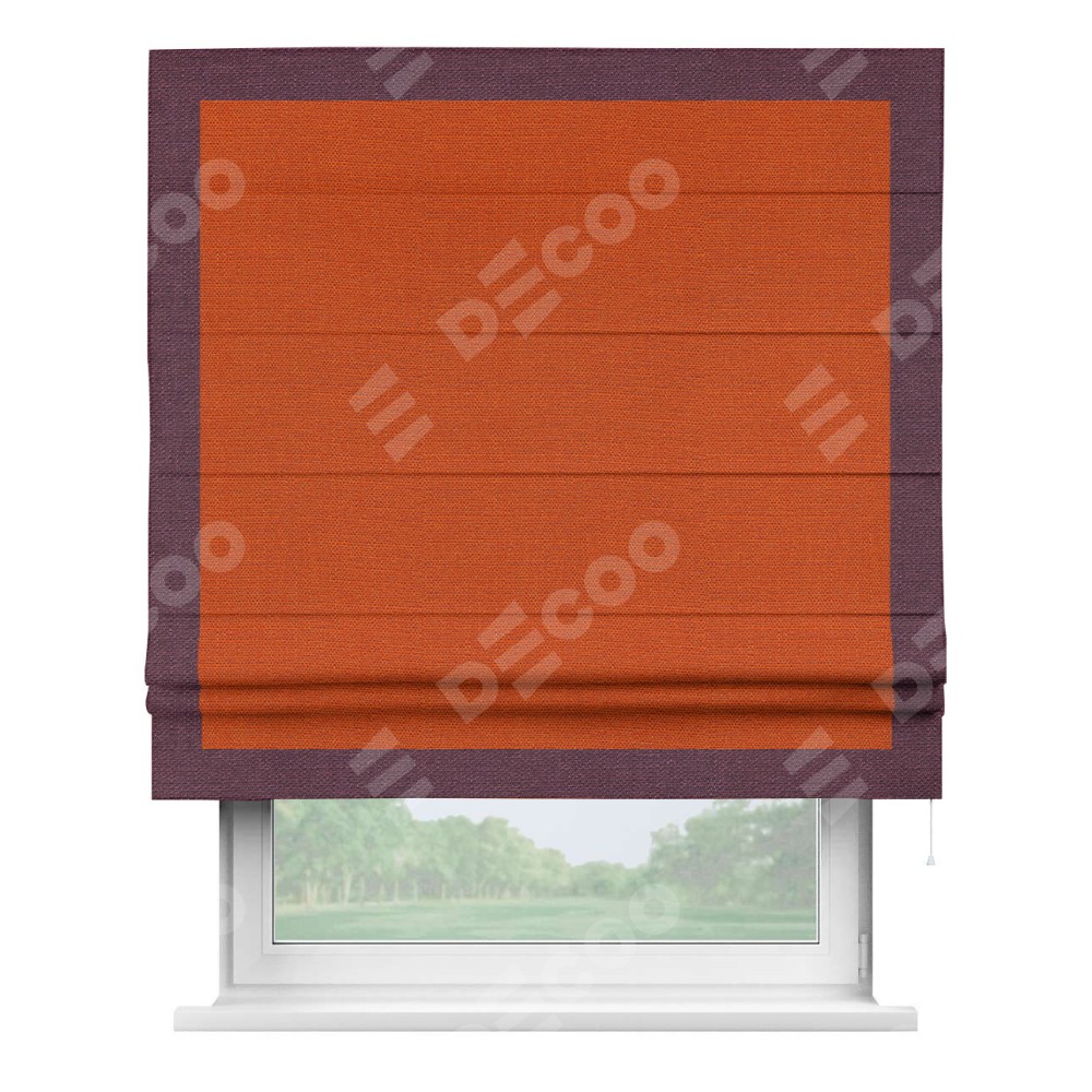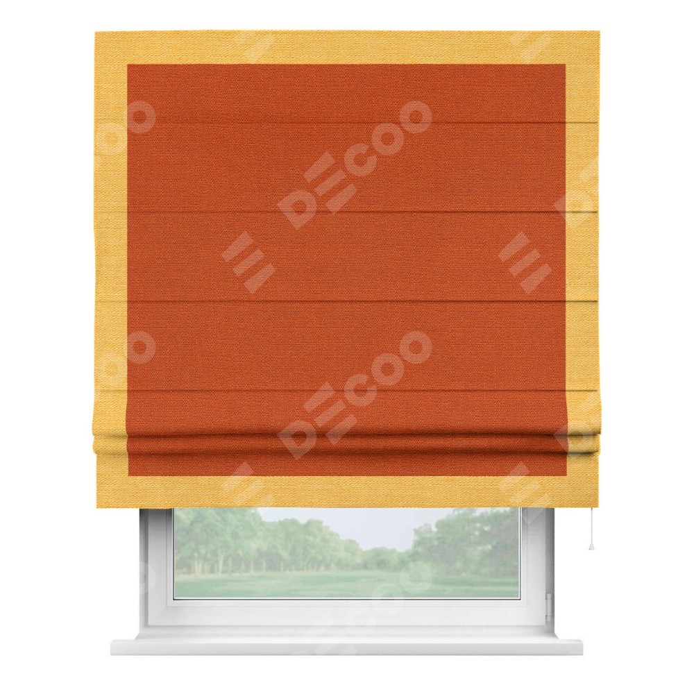 Римская штора «Кортин» с кантом Чесс, для проема, ткань лён терракотовый