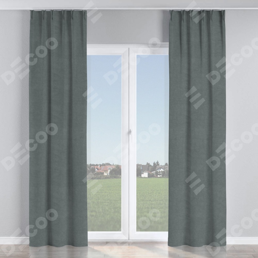 Комплект прямых штор, от производителя «Cortin», пошиты из ткани вельвет серый, артикул ткани 85542. С изнаночной стороны в верхней части штор пристрачивается шторная лента с декоративными складками «Кустик». Для создания элегантных складок прямые шторы шьются по стандарту с коэффициентом 1:2 (на 100 см. ширины проёма 200 см. ширины ткани).