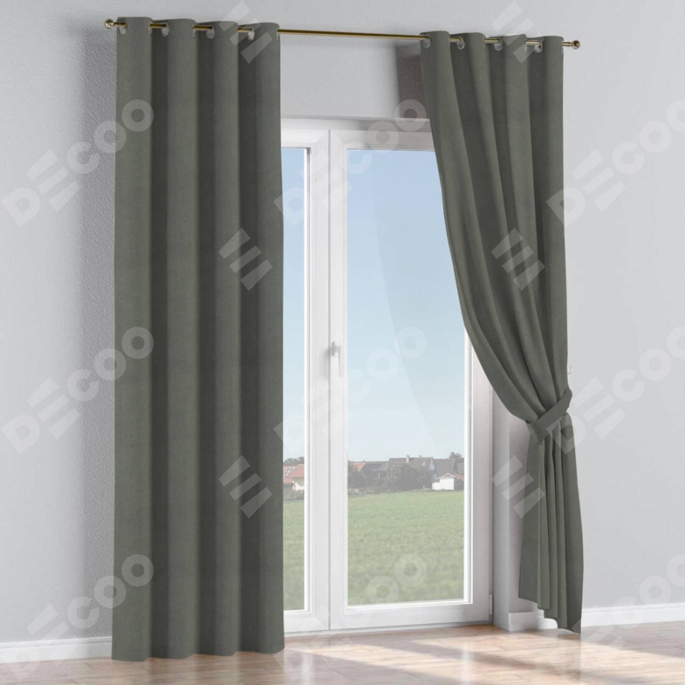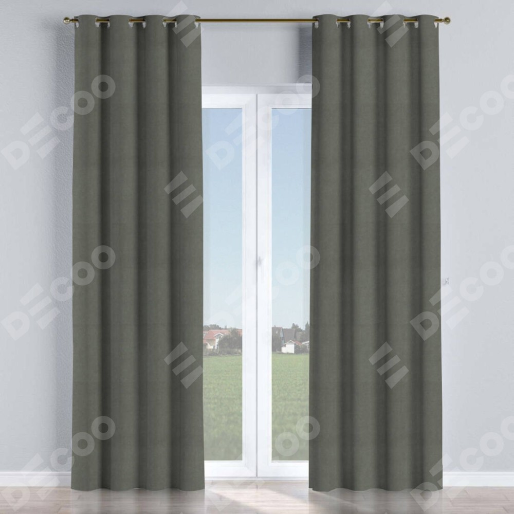 Комплект прямых штор, от производителя «Cortin», пошиты из ткани вельвет тёмно-серый, артикул ткани 85542. Данная модель пошита на люверсах, комплектуется на выбор круглым карнизом и подходит для монтажа на стену или потолок. Прямые шторы на люверсах шьются по стандарту с коэффициентом 1/2 (на 100 см. ширины проёма 200 см. ширины ткани), отличительным преимуществом данной модели является простой способ монтажа. Достаточно повесить ее на трубу и штора готова!
