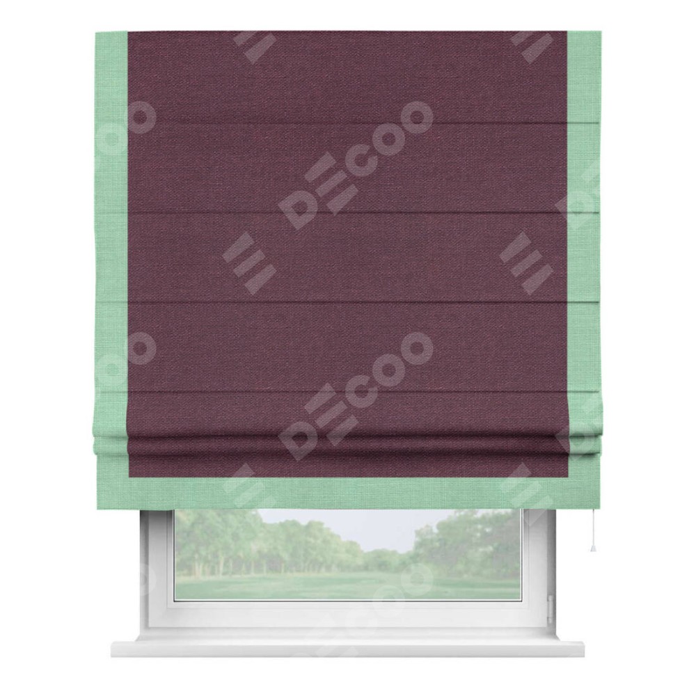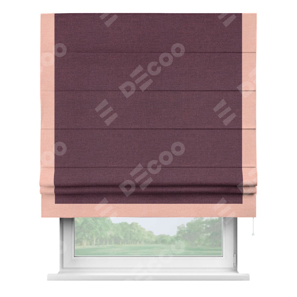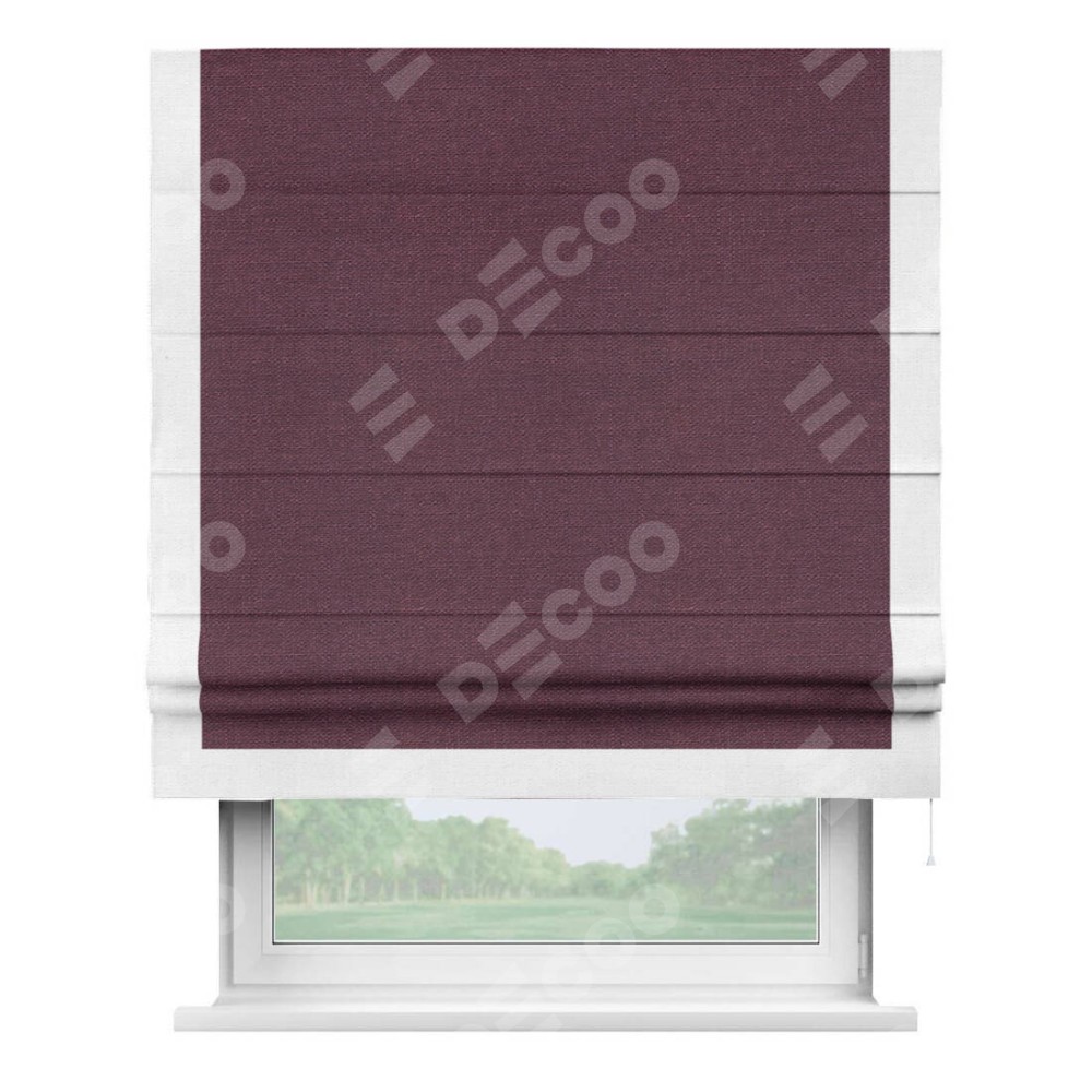 Римская штора производителя «Cortin», используется для проёма, пошита из ткани лён фиолетовый, артикул 85907. Отделка шторы кантом «Виктория», ткань для канта используется из льна разной расцветки на выбор. Имеет универсальный механизм и подходит для монтажа: на потолок, на стену и в нишу.