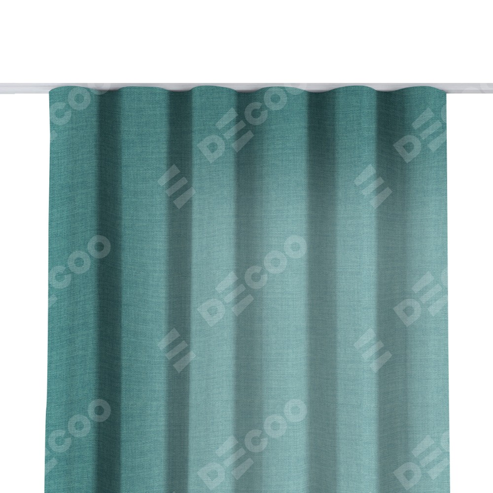 Комплект прямых штор, от производителя «Cortin», пошиты из ткани лён бирюза, артикул ткани 7446. С изнаночной стороны в верхней части штор пристрачивается шторная лента с декоративными складками «Волна». Для создания элегантных складок прямые шторы шьются по стандарту с коэффициентом 1:2 (на 100 см. ширины проёма 200 см. ширины ткани).