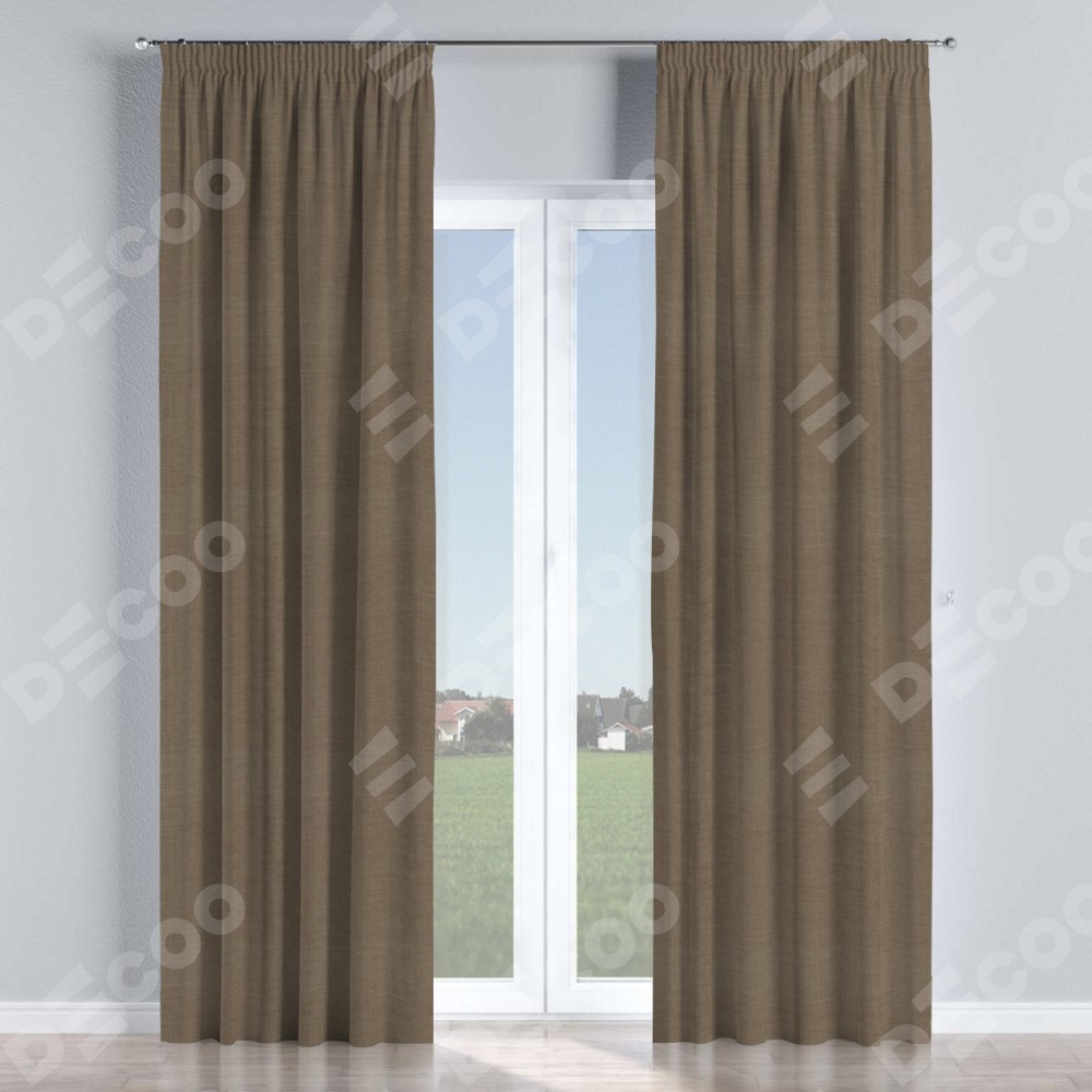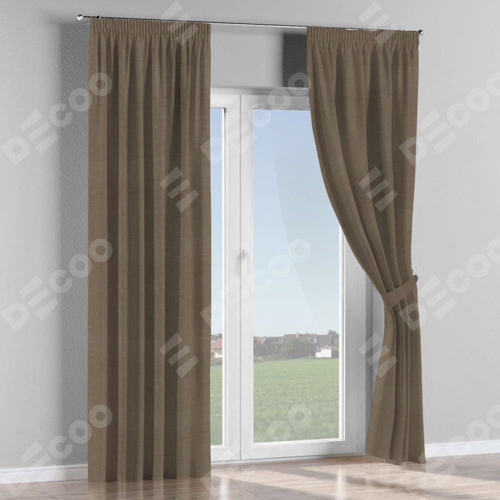 Комплект прямых штор, от производителя «Cortin», пошиты из ткани лён мокко, артикул ткани 7444. С изнаночной стороны в верхней части штор пристрачивается шторная лента с декоративными складками «Карандаш». Для создания элегантных складок прямые шторы шьются по стандарту с коэффициентом 1:2 (на 100 см. ширины проёма 200 см. ширины ткани).