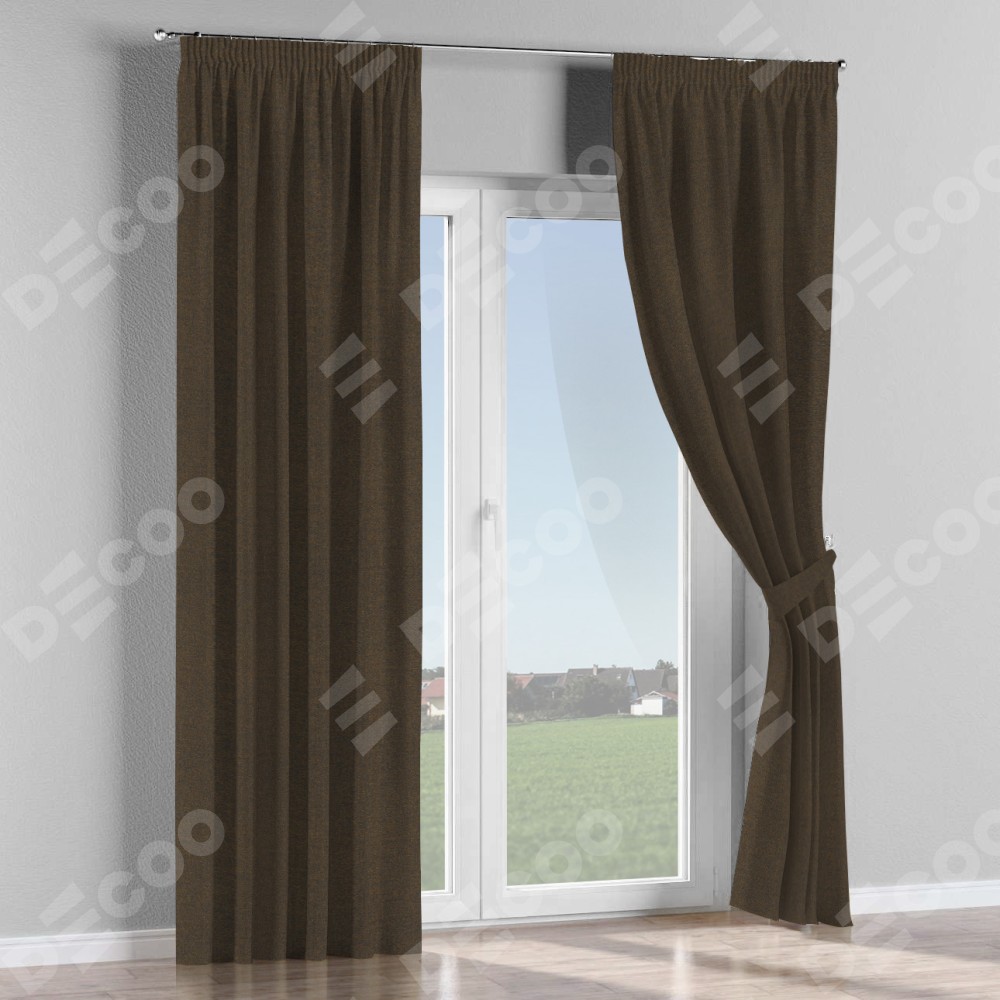Комплект штор на тесьме «Карандаш», лён тёмно-коричневый