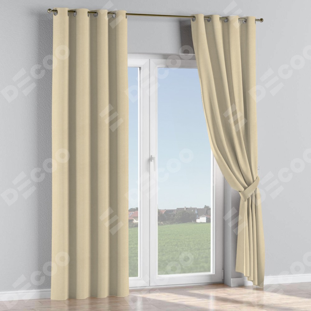 Комплект прямых штор, от производителя «Cortin», пошиты из ткани софт однотонный бежевый лайт, артикул ткани 33100. Данная модель пошита на люверсах, комплектуется на выбор круглым карнизом и подходит для монтажа на стену или потолок. Прямые шторы на люверсах шьются по стандарту с коэффициентом 1/2 (на 100 см. ширины проёма 200 см. ширины ткани), отличительным преимуществом данной модели является простой способ монтажа. Достаточно повесить ее на трубу и штора готова!