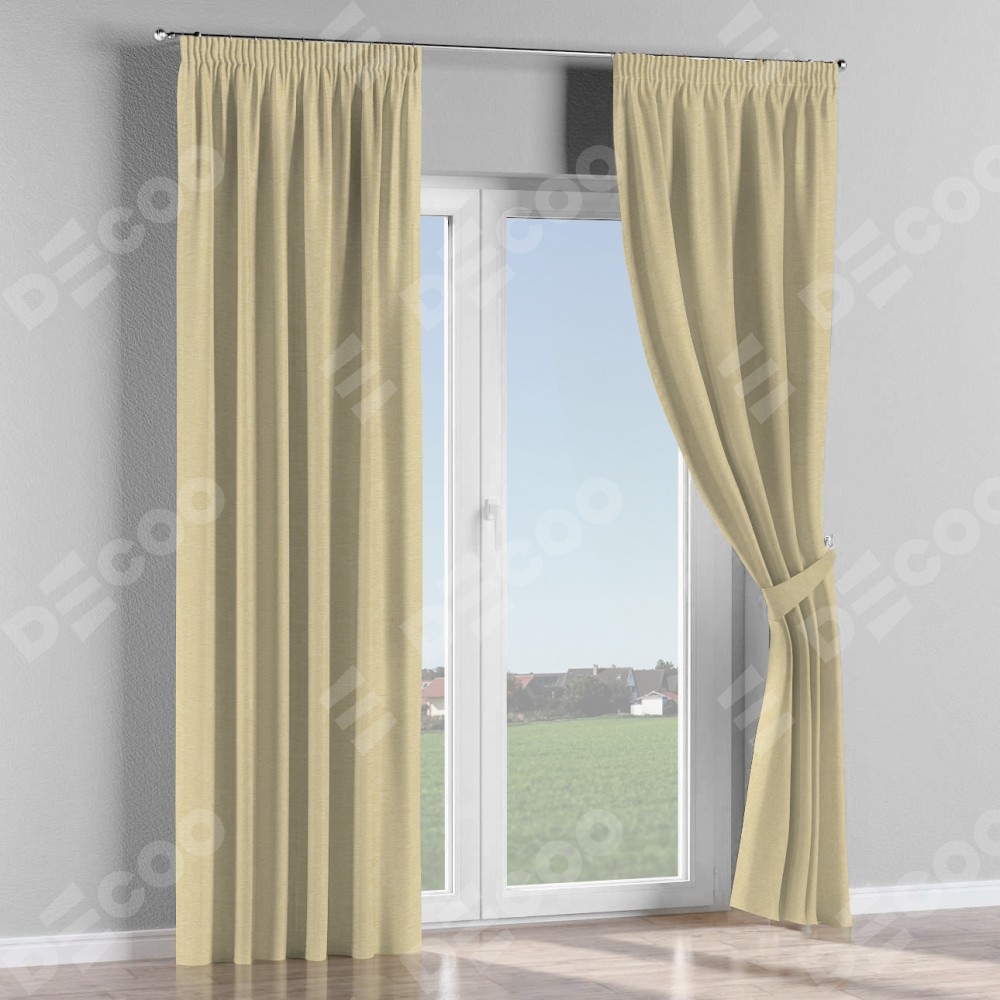 Комплект прямых штор, от производителя «Cortin», пошиты из ткани софт однотонный светло-бежевый, артикул ткани 54426. С изнаночной стороны в верхней части штор пристрачивается шторная лента с декоративными складками «Карандаш». Для создания элегантных складок прямые шторы шьются по стандарту с коэффициентом 1:2 (на 100 см. ширины проёма 200 см. ширины ткани).