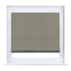 Римская штора кассетного типа, производителя «Cortin», устанавливается только на пластиковые окна и прилегает к стеклопакету, пошита из ткани блэкаут однотонный бежево-серый, артикул 00004.