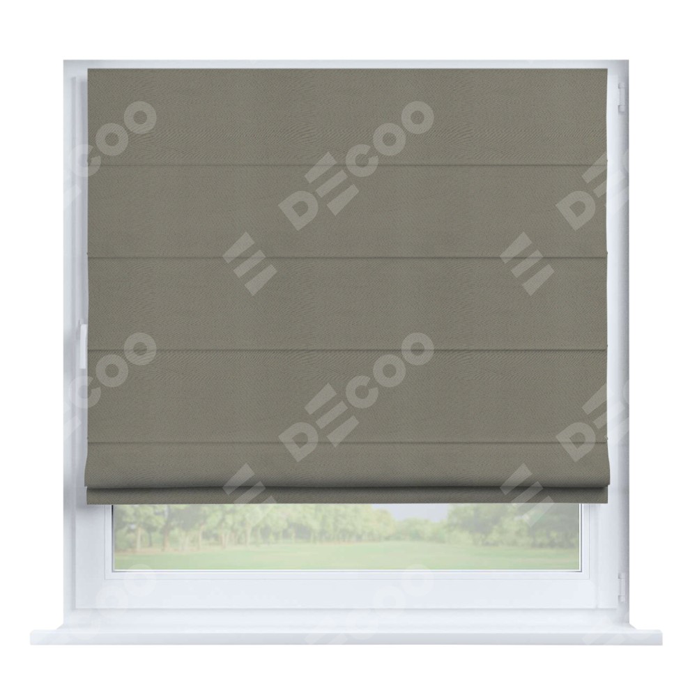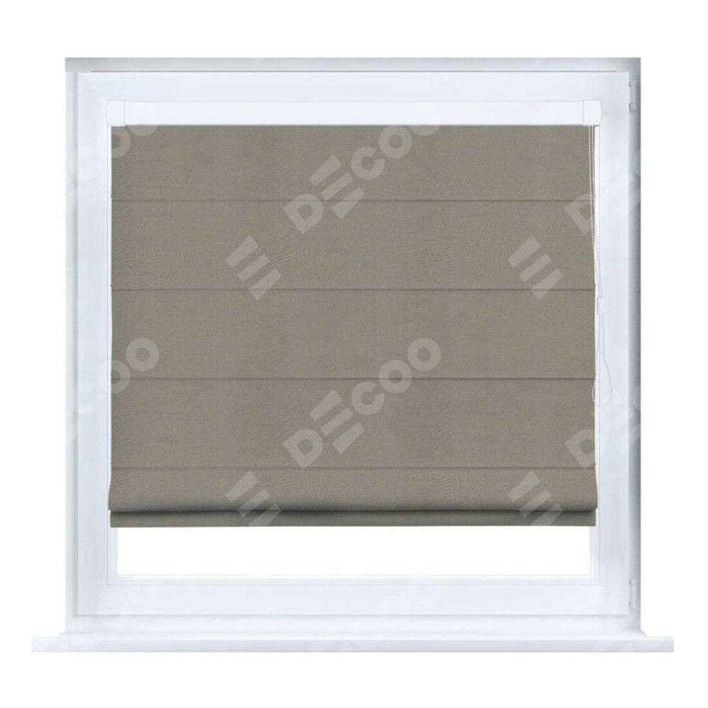 Римская штора производителя «Cortin», устанавливается на створку окна, пошита из ткани блэкаут однотонный бежево-серый, артикул 00004. Штора шьётся по индивидуальным размерам, для данного типа римской шторы возможная ширина от 35 до 150 см., высота до 250 см.