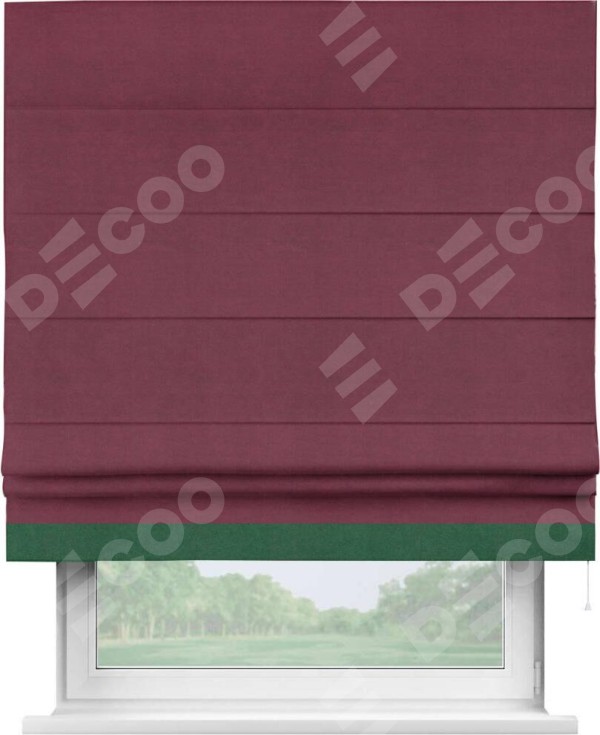 Римская штора «Кортин» с кантом Джестер, для проема, ткань вельвет бордовый