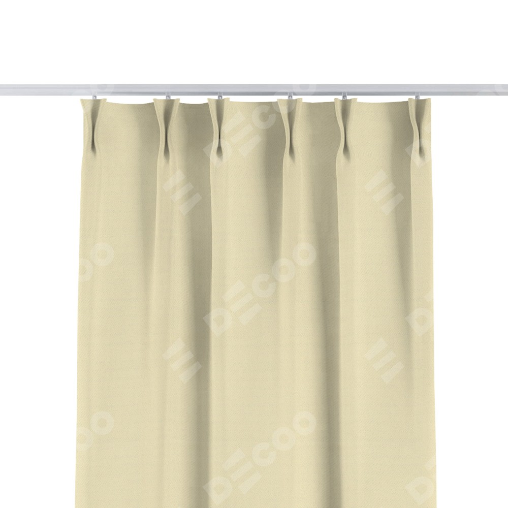 Комплект прямых штор, от производителя «Cortin», пошиты из ткани блэкаут однотонный бежевый, артикул ткани 88283. С изнаночной стороны в верхней части штор пристрачивается шторная лента с декоративными складками «Кустик». Для создания элегантных складок прямые шторы шьются по стандарту с коэффициентом 1:2 (на 100 см. ширины проёма 200 см. ширины ткани).