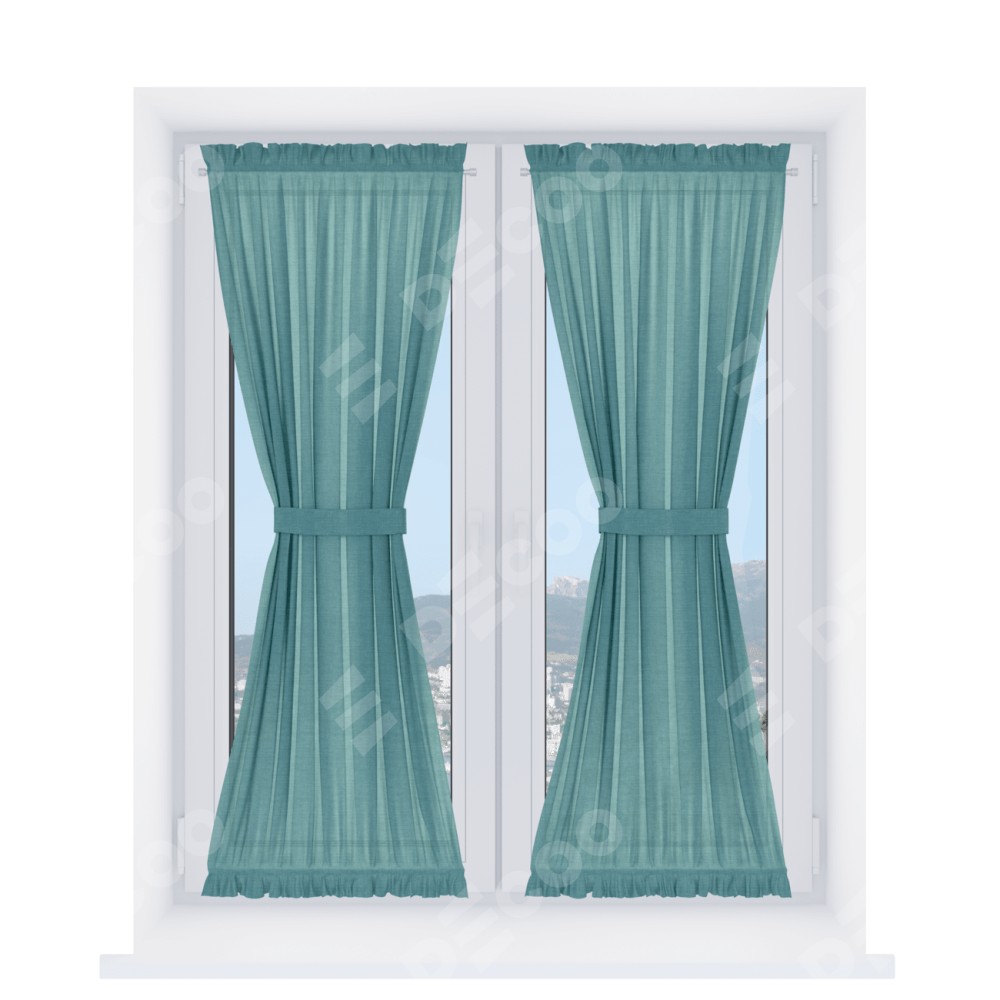 Штора «Песочные часы» производителя «Cortin», используется для створок окон и дверей, пошита из ткани лён бирюза, артикул ткани 7446.
