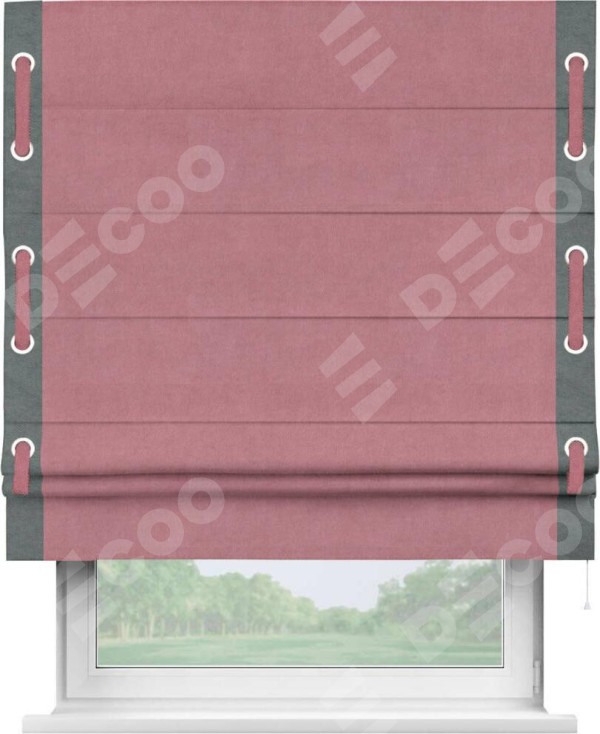 Римская штора «Кортин» с кантом Стрим Дуо (люверсы с пояском), для проема, ткань вельвет брусника