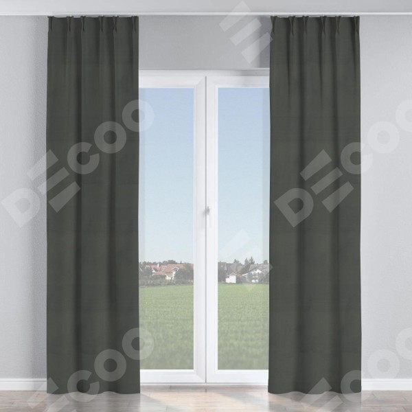 Комплект прямых штор, от производителя «Cortin», пошиты из ткани бархат серый, артикул ткани 5024. С изнаночной стороны в верхней части штор пристрачивается шторная лента с декоративными складками «Кустик». Для создания элегантных складок прямые шторы шьются по стандарту с коэффициентом 1:2 (на 100 см. ширины проёма 200 см. ширины ткани).