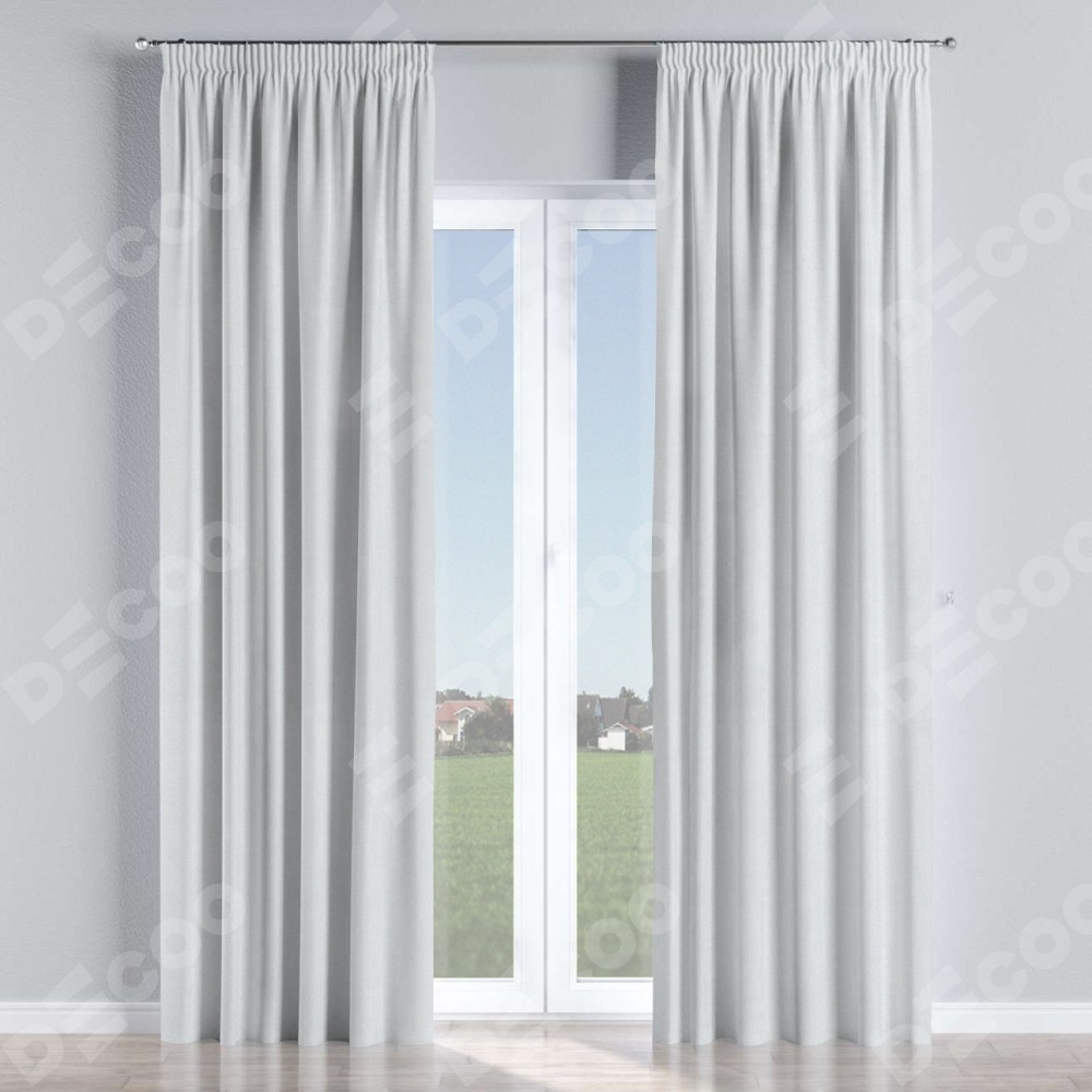 Комплект прямых штор, от производителя «Cortin», пошиты из ткани блэкаут однотонный дымчато-белый, артикул ткани 101. С изнаночной стороны в верхней части штор пристрачивается шторная лента с декоративными складками «Карандаш». Для создания элегантных складок прямые шторы шьются по стандарту с коэффициентом 1:2 (на 100 см. ширины проёма 200 см. ширины ткани).