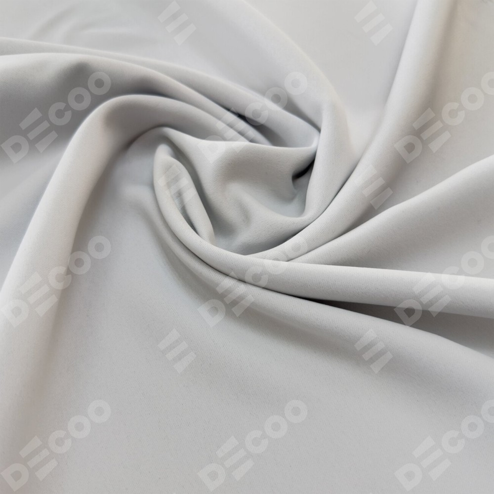Комплект прямых штор, от производителя «Cortin», пошиты из ткани блэкаут однотонный дымчато-белый, артикул ткани 101. С изнаночной стороны в верхней части штор пристрачивается шторная лента с декоративными складками «Кустик». Для создания элегантных складок прямые шторы шьются по стандарту с коэффициентом 1:2 (на 100 см. ширины проёма 200 см. ширины ткани).