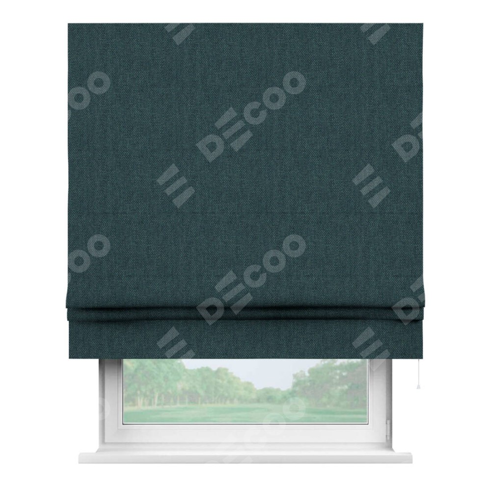Римская штора производителя «Cortin», используется для проёма, пошита из ткани лён димаут серо-синий, артикул ткани 03238. Имеет универсальный механизм и подходит для монтажа: на потолок, на стену и в нишу.