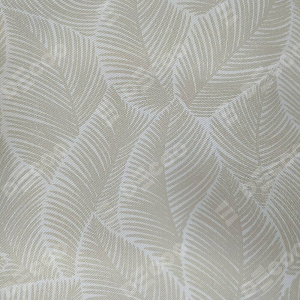 Римская штора день-ночь производителя «Cortin», используется для проёма, пошита из двух полотен, с лицевой блэкаут с нанесением сублимационной печати «Бежевые листья», вторая ткань тюль (по стандарту комплектуется тюль белого цвета артикул V-01). Имеет универсальный механизм и подходит для монтажа: на потолок, на стену и в нишу.