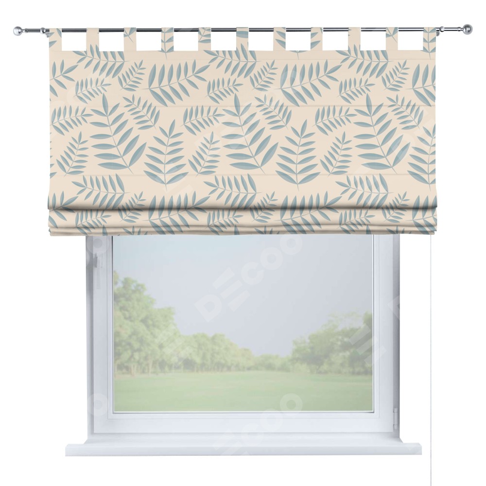 Римская штора производителя «Cortin», используется для проёма, пошита из ткани блэкаут с нанесением сублимационной печати «Веточка с листочками». Данная модель пошита на петлях, комплектуется на выбор круглым карнизом и подходит для монтажа на стену. Римская штора на петлях имеет простую систему регулировки высоты, отличительным преимуществом данной модели является простой способ монтажа. Достаточно повесить ее на трубу и штора готова!