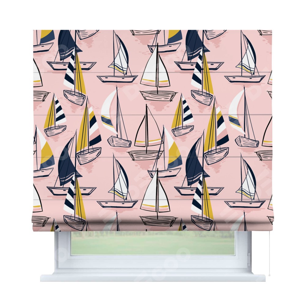Римская штора производителя «Cortin», используется для проёма, пошита из ткани блэкаут с нанесением сублимационной печати «Парусная регата». Имеет универсальный механизм и подходит для монтажа: на потолок, на стену и в нишу.