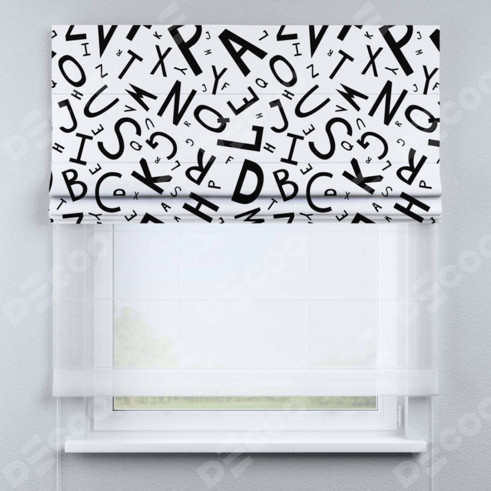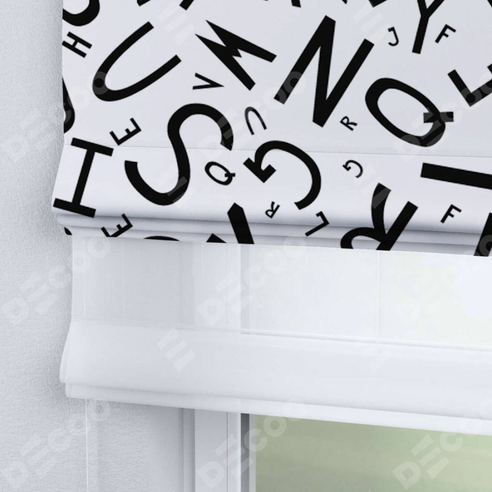 Римская штора «Кортин» день-ночь «Литеры на белом»