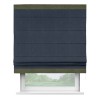 Римская штора производителя «Cortin», используется для проёма, пошита из ткани софт однотонный тёмно-синий, артикул 33111. Отделка шторы кантом «Горизонт», ткань для канта используется из софта разной расцветки на выбор. Имеет универсальный механизм и подходит для монтажа: на потолок, на стену и в нишу.
