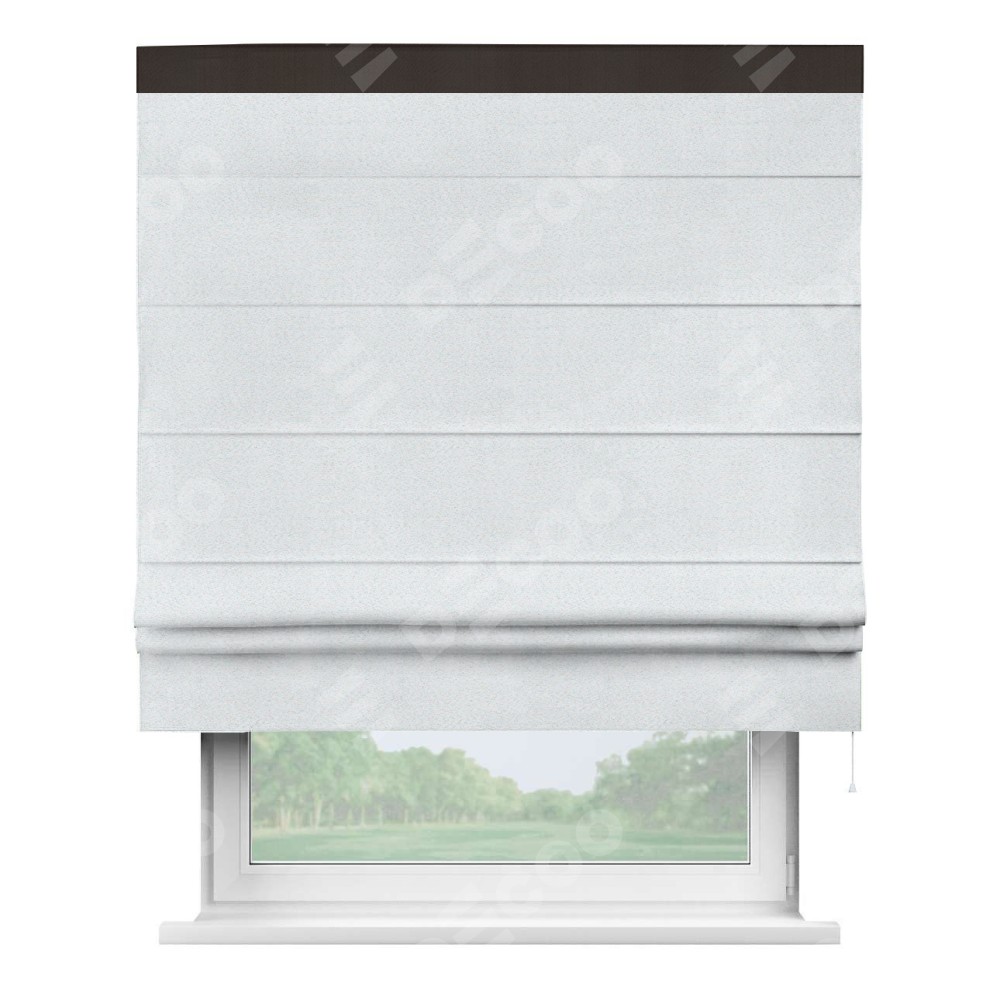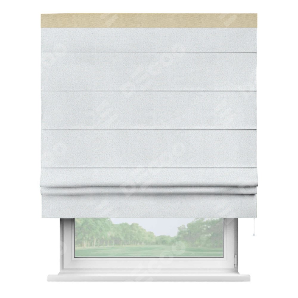Римская штора производителя «Cortin», используется для проёма, пошита из ткани блэкаут однотонный дымчато-белый, артикул ткани 101. Отделка шторы кантом «Кинг», ткань для канта используется из блэкаута однотонного разной расцветки на выбор. Имеет универсальный механизм и подходит для монтажа: на потолок, на стену и в нишу.
