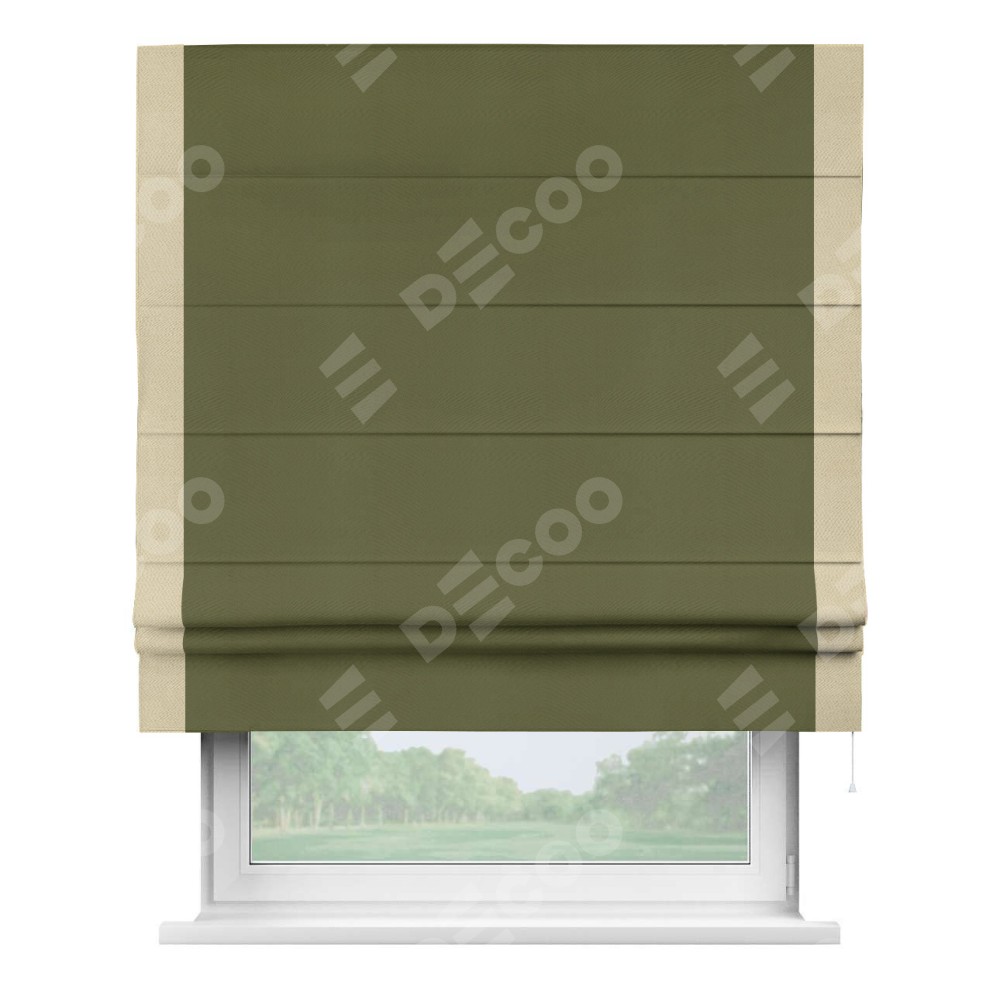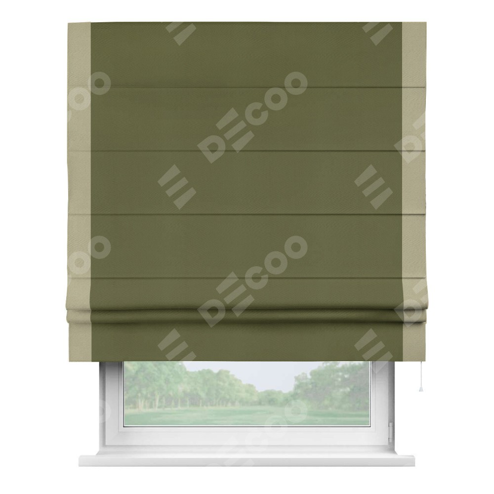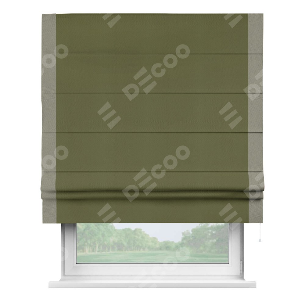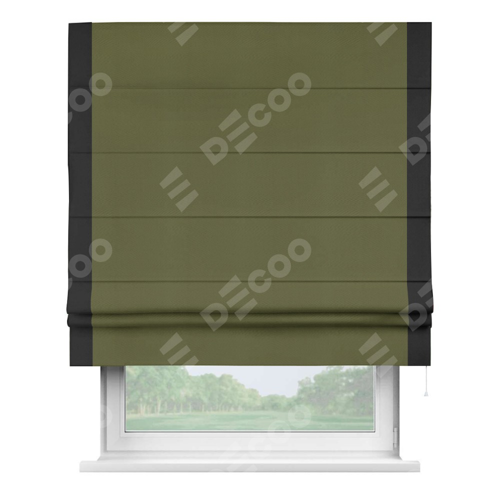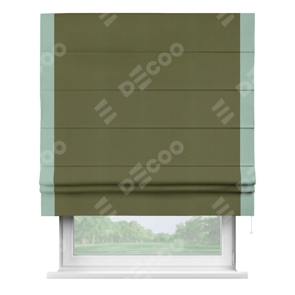 Римская штора «Кортин» с кантом Стрим Дуо, для проема, ткань блэкаут однотонный зелёный