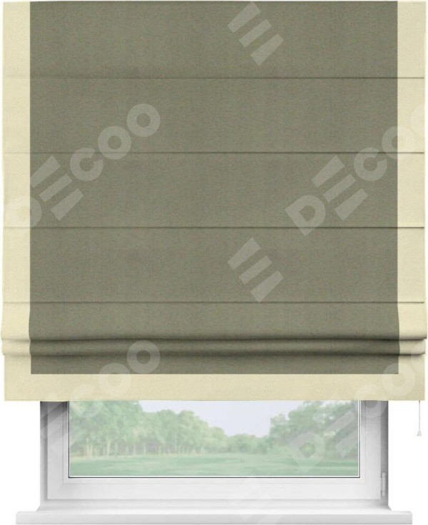 Римская штора «Кортин» с кантом Виктория, для проема, ткань блэкаут однотонный серо-коричневый