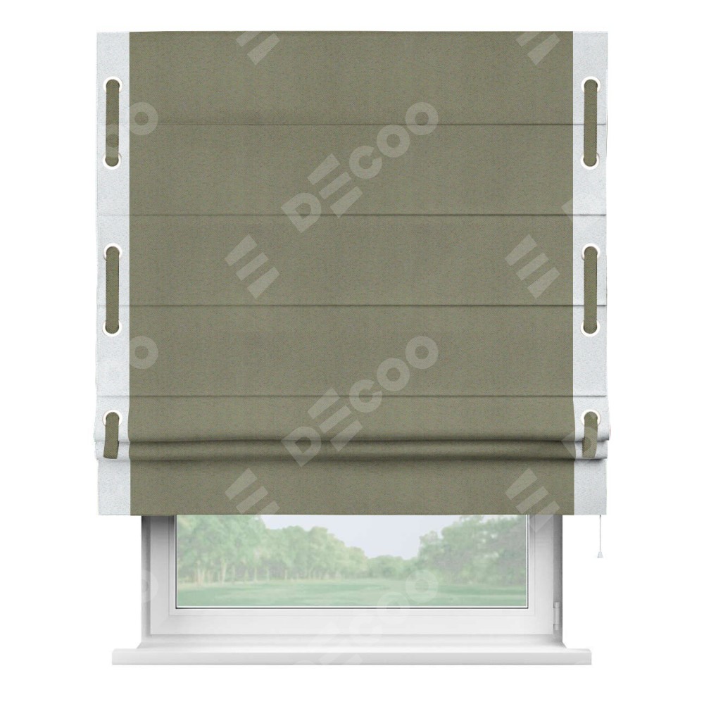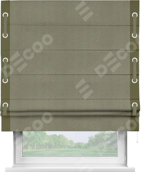 Римская штора «Кортин» с кантом Стрим Дуо (люверсы с пояском), для проема, ткань блэкаут однотонный серо-коричневый