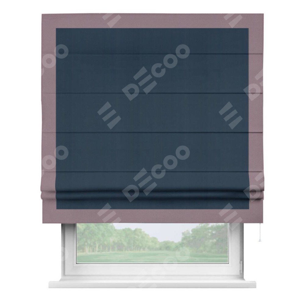 Римская штора производителя «Cortin», используется для проёма, пошита из ткани блэкаут однотонный синий, артикул ткани 29327. Отделка шторы кантом «Чесс», ткань для канта используется из блэкаута однотонного разной расцветки на выбор. Имеет универсальный механизм и подходит для монтажа: на потолок, на стену и в нишу.