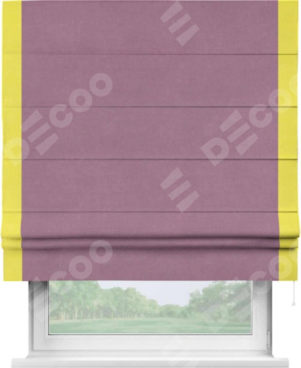 Римская штора «Кортин» с кантом Стрим Дуо, для проема, ткань вельвет лиловый