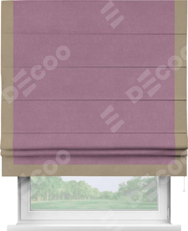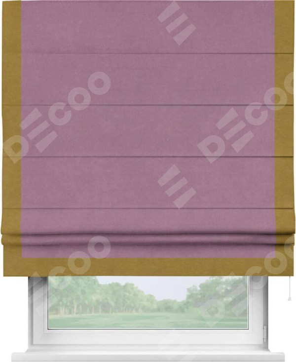 Римская штора «Кортин» с кантом Виктория, для проема, ткань вельвет лиловый