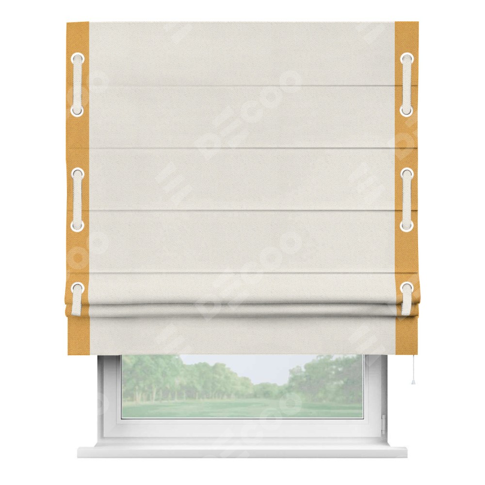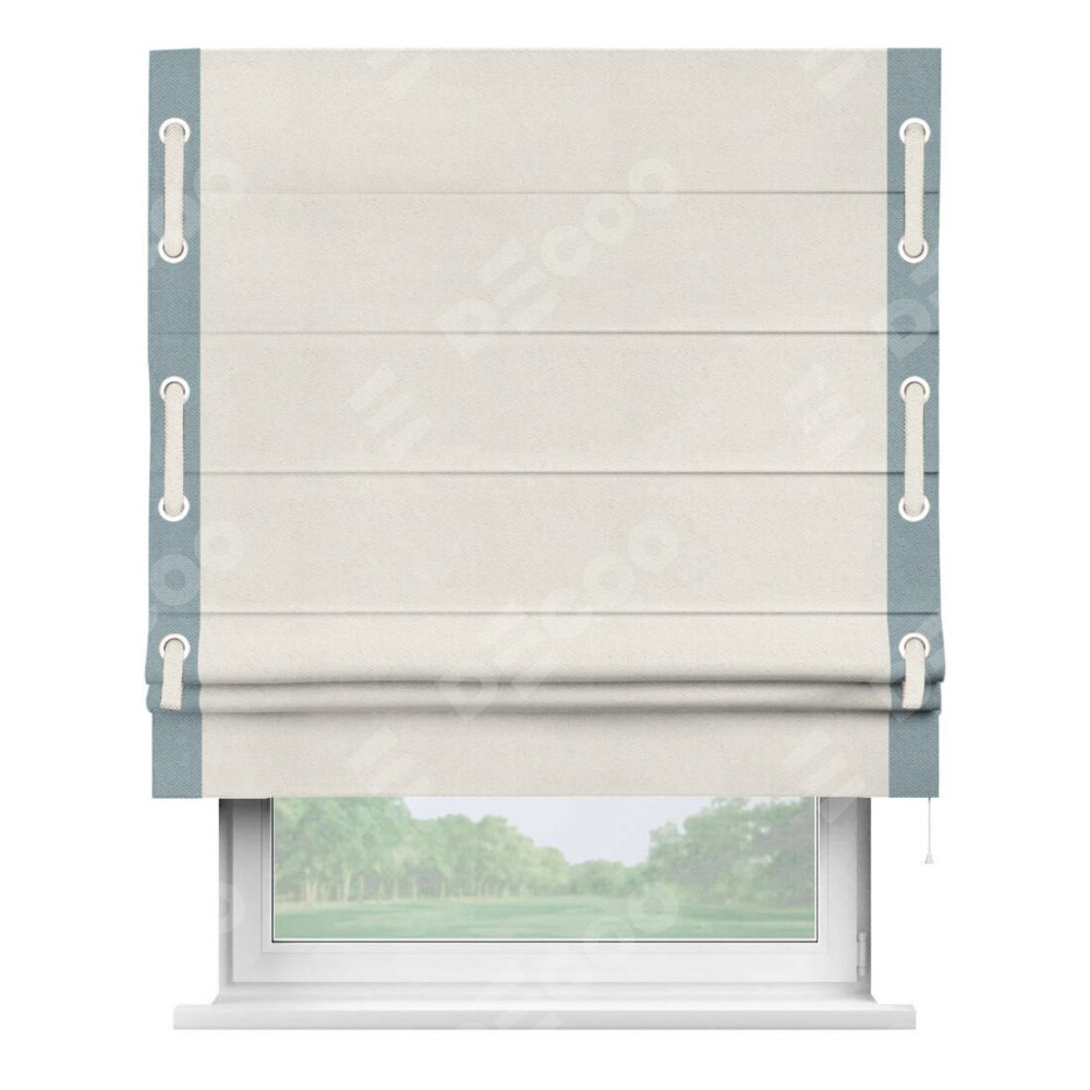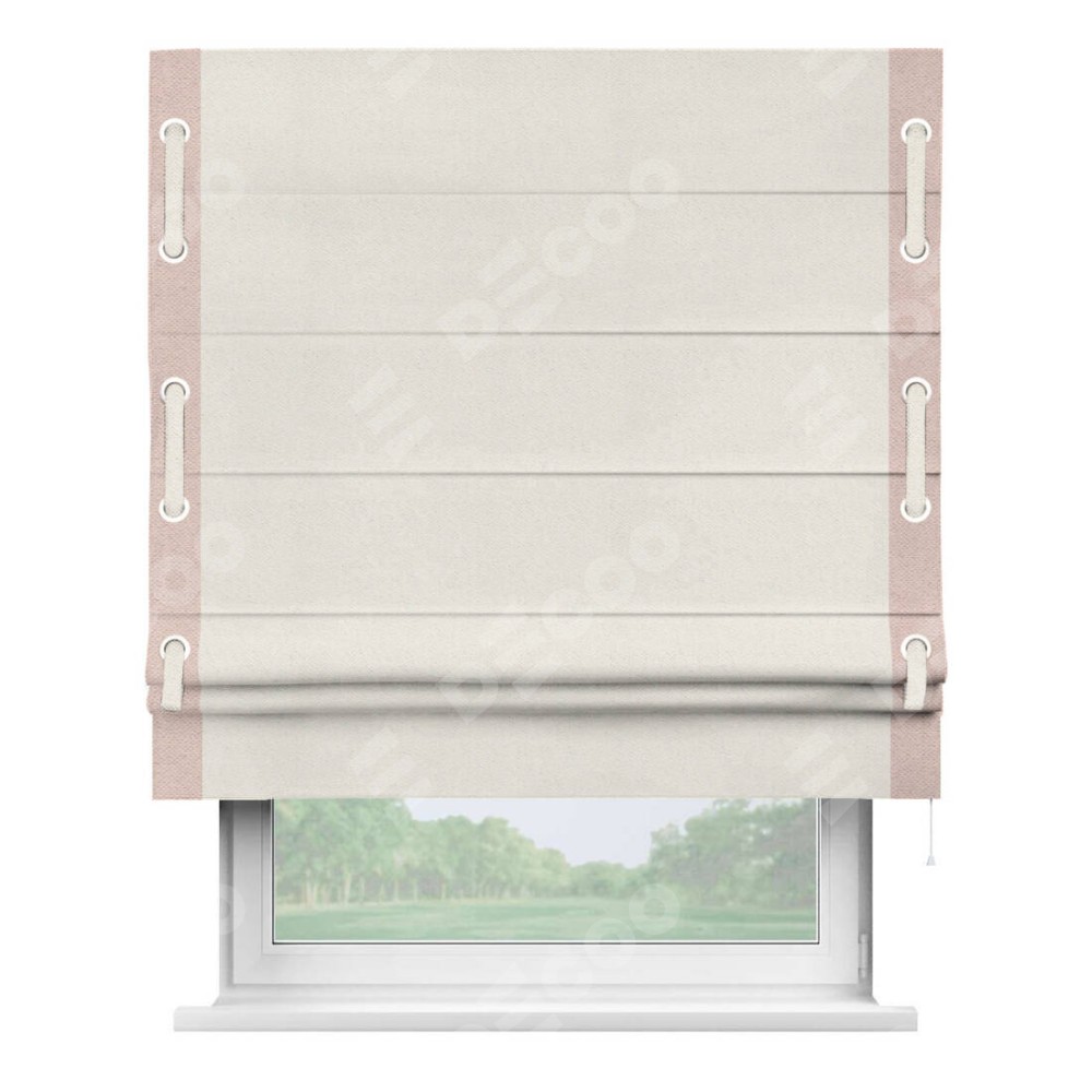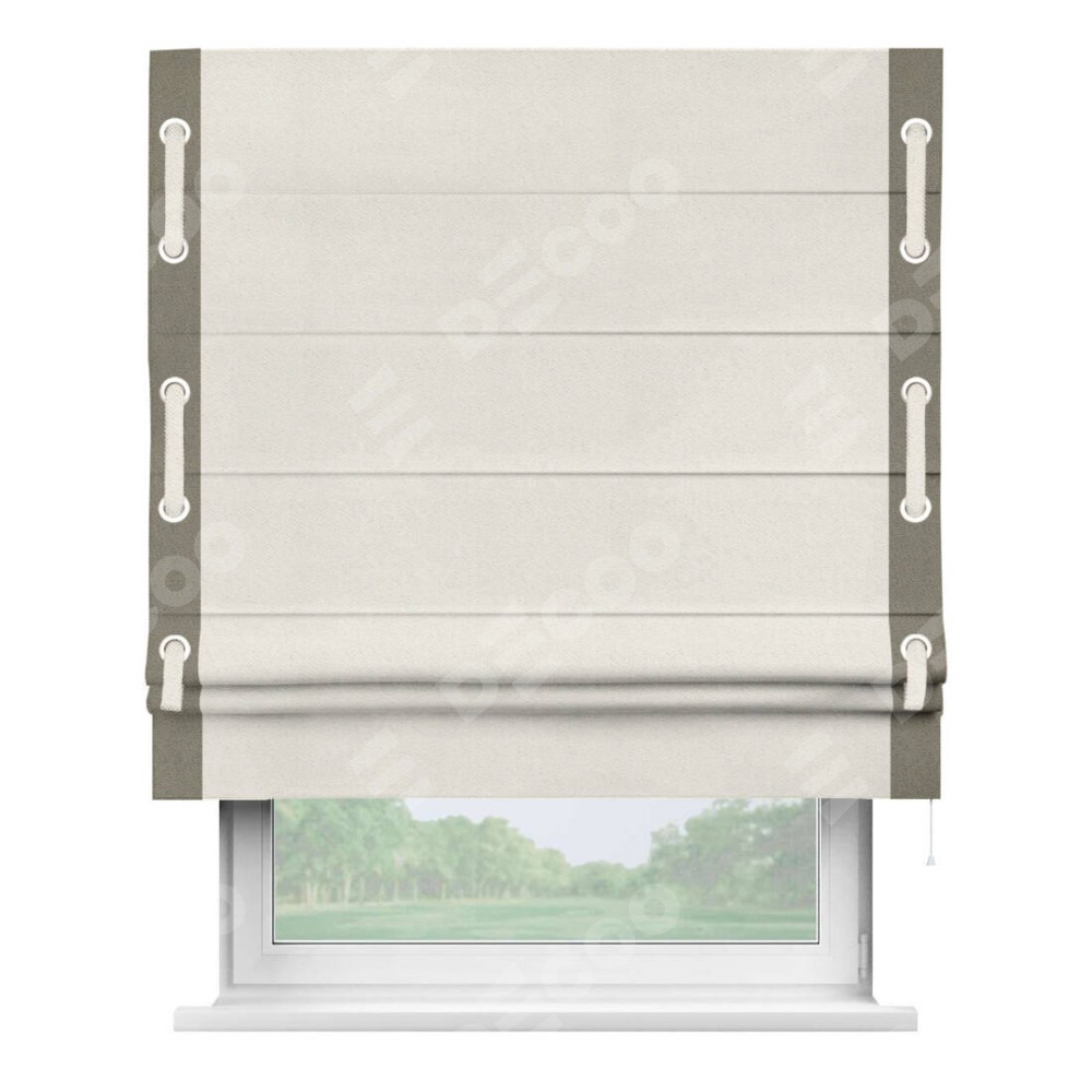 Римская штора «Кортин» с кантом Стрим Дуо (люверсы с пояском) предоставлена в следующих характеристиках: