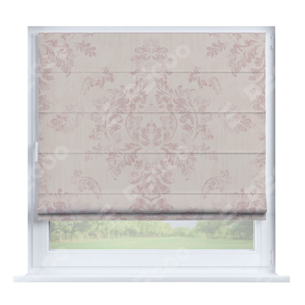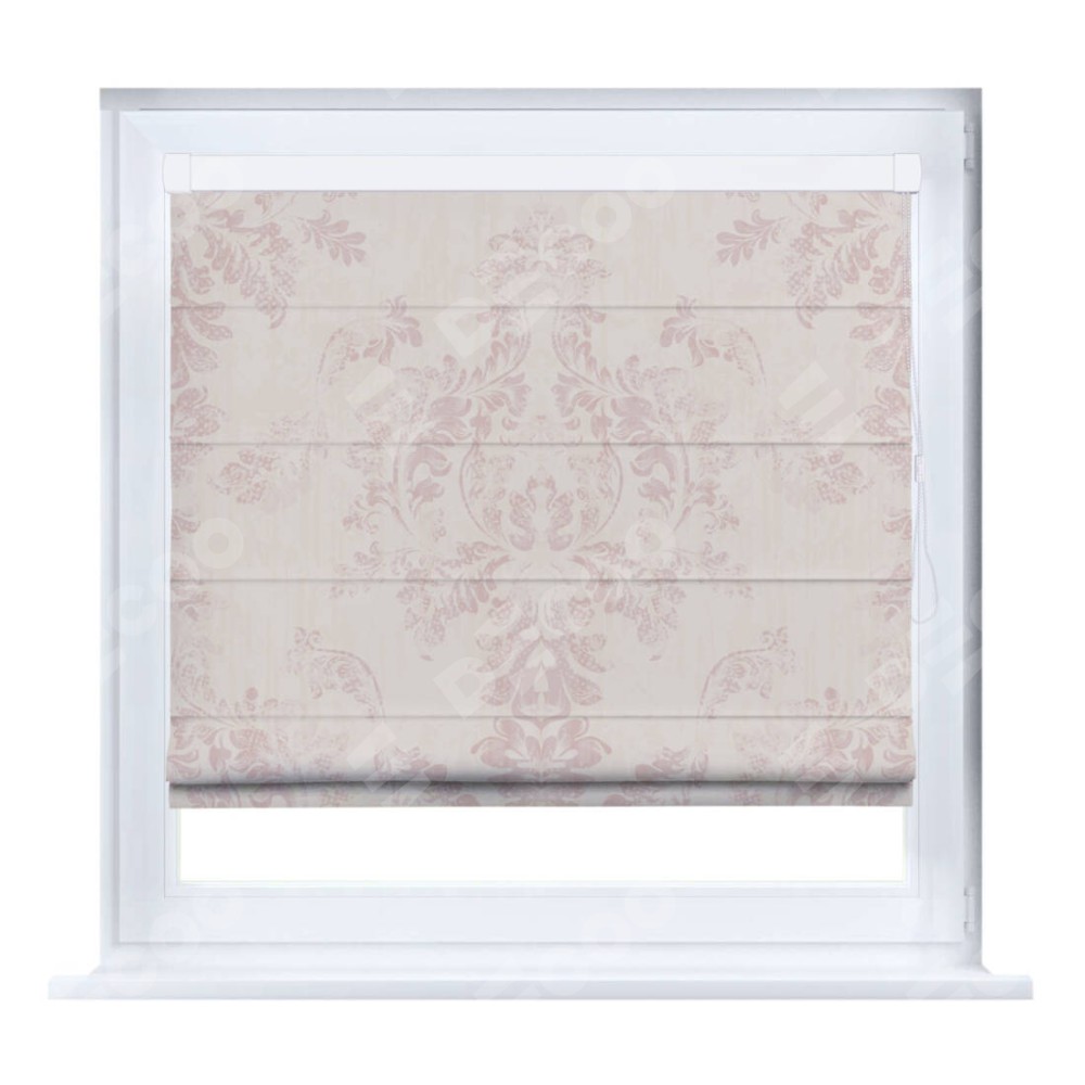 Римская штора производителя «Cortin», устанавливается на створку окна, пошита из ткани блэкаут с нанесением сублимационной печати «Винтажный узор пудровый». Штора шьётся по индивидуальным размерам, для данного типа римской шторы возможная ширина от 35 до 150 см., высота до 250 см.