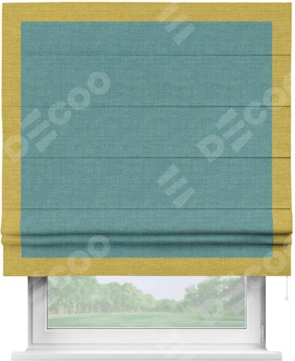Римская штора «Кортин» с кантом Чесс, для проема, ткань лён бирюза