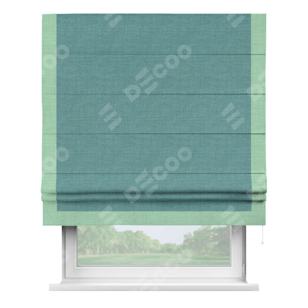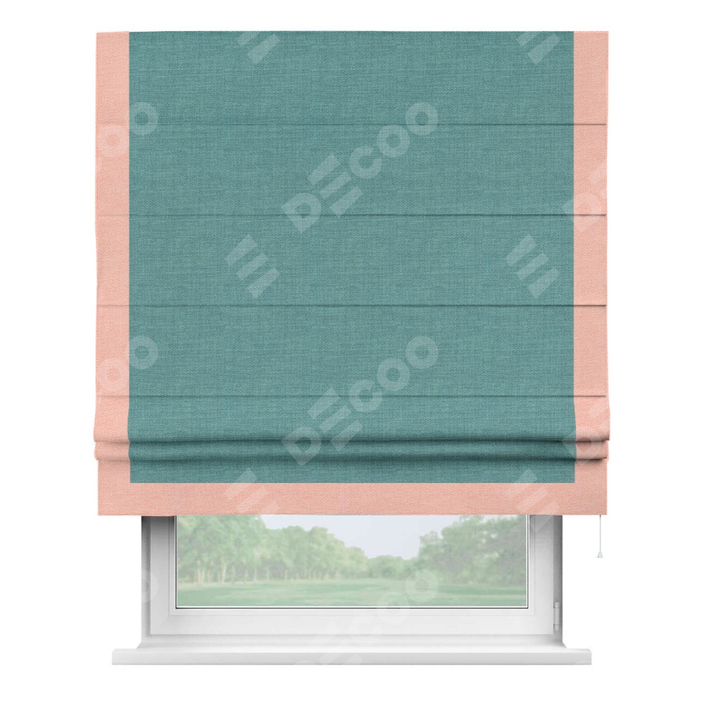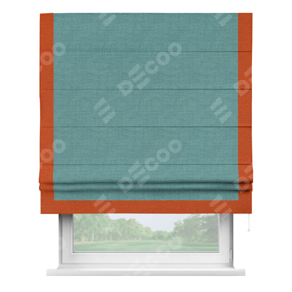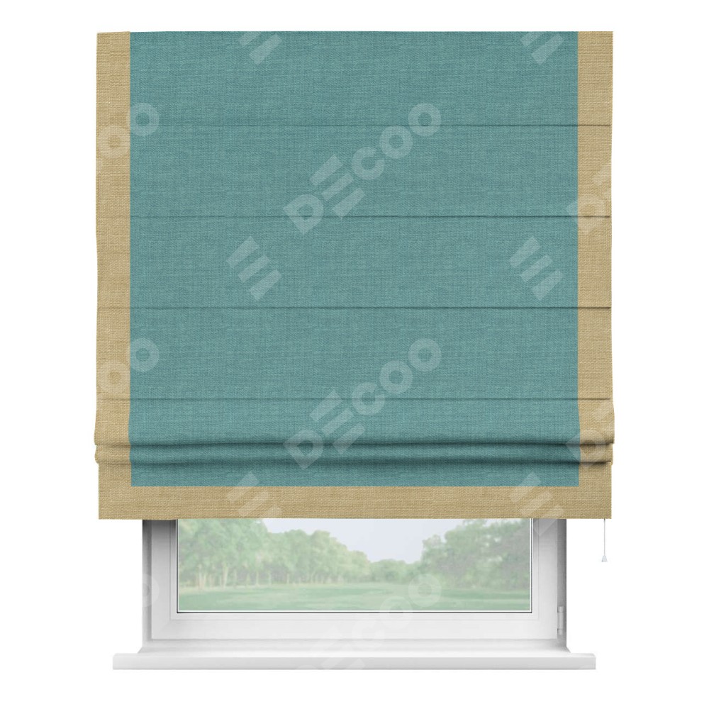 Римская штора «Кортин» с кантом Виктория, для проема, ткань лён бирюза