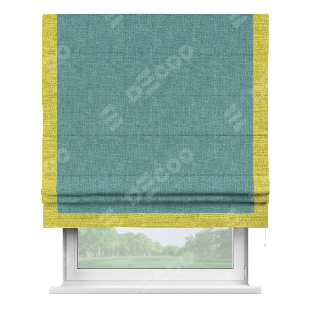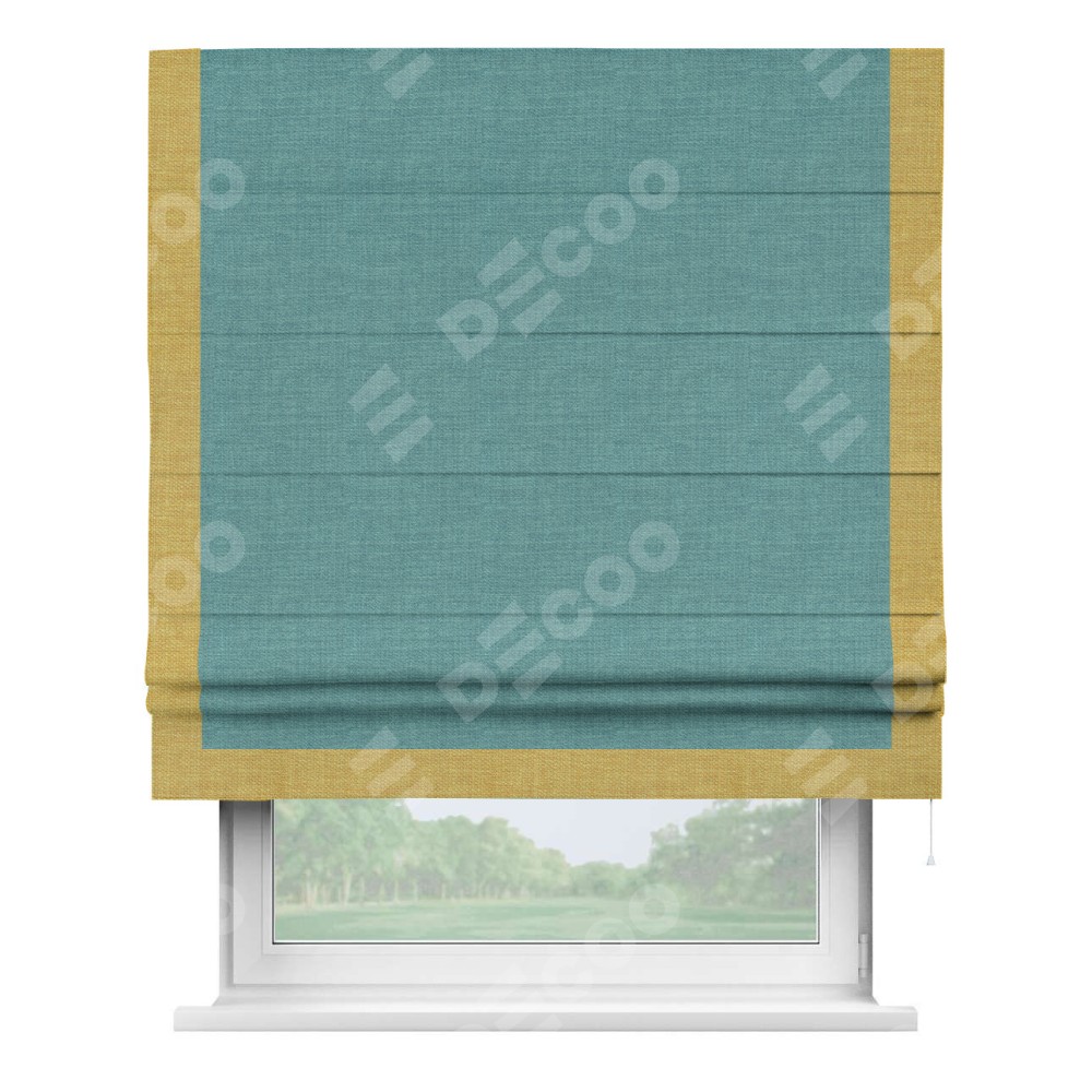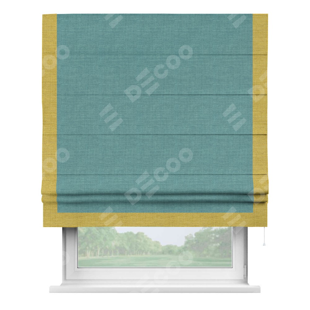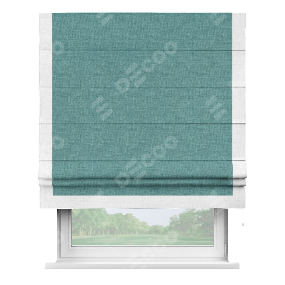 Римская штора «Кортин» с кантом Виктория, для проема, ткань лён бирюза