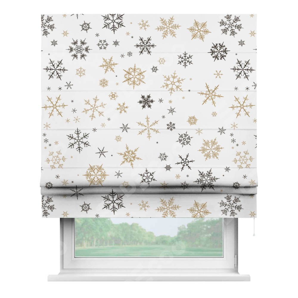 Римская штора производителя «Cortin», используется для проёма, пошита из ткани блэкаут с нанесением сублимационной печати «Зимняя метель». Имеет универсальный механизм и подходит для монтажа: на потолок, на стену и в нишу.
