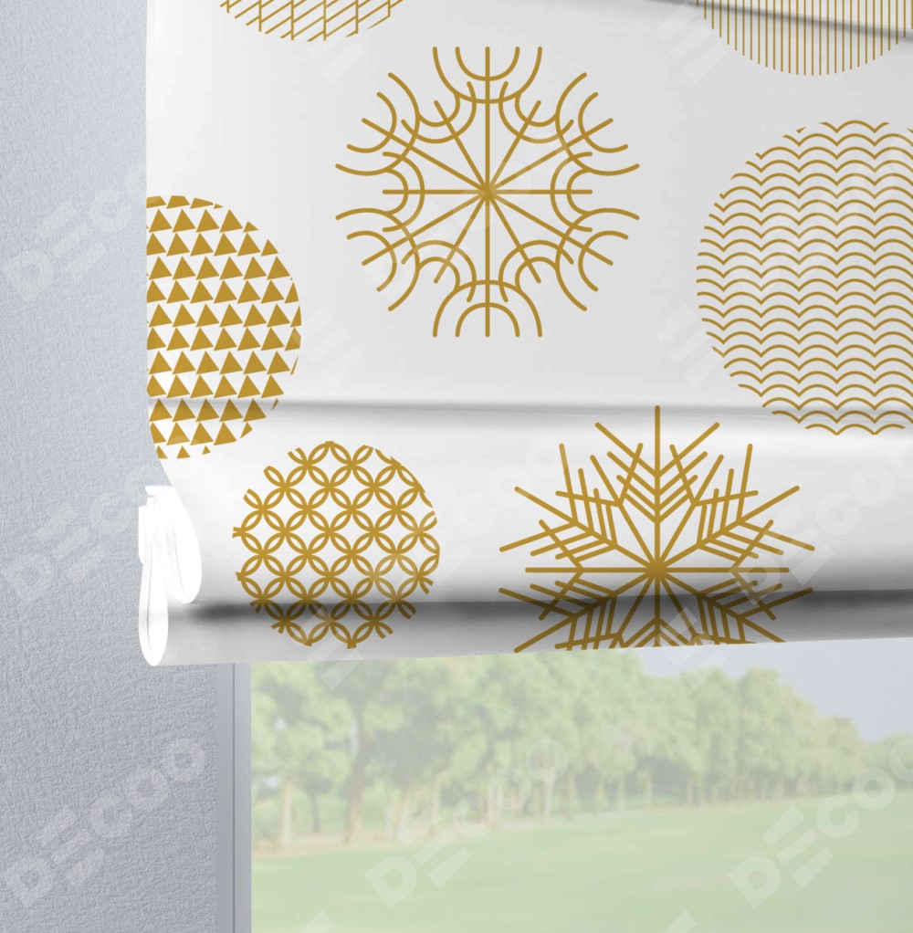 Римская штора производителя «Cortin», используется для проёма, пошита из ткани блэкаут с нанесением сублимационной печати «Золотые шары». Данная модель пошита на петлях, комплектуется на выбор круглым карнизом и подходит для монтажа на стену. Римская штора на петлях имеет простую систему регулировки высоты, отличительным преимуществом данной модели является простой способ монтажа. Достаточно повесить ее на трубу и штора готова!