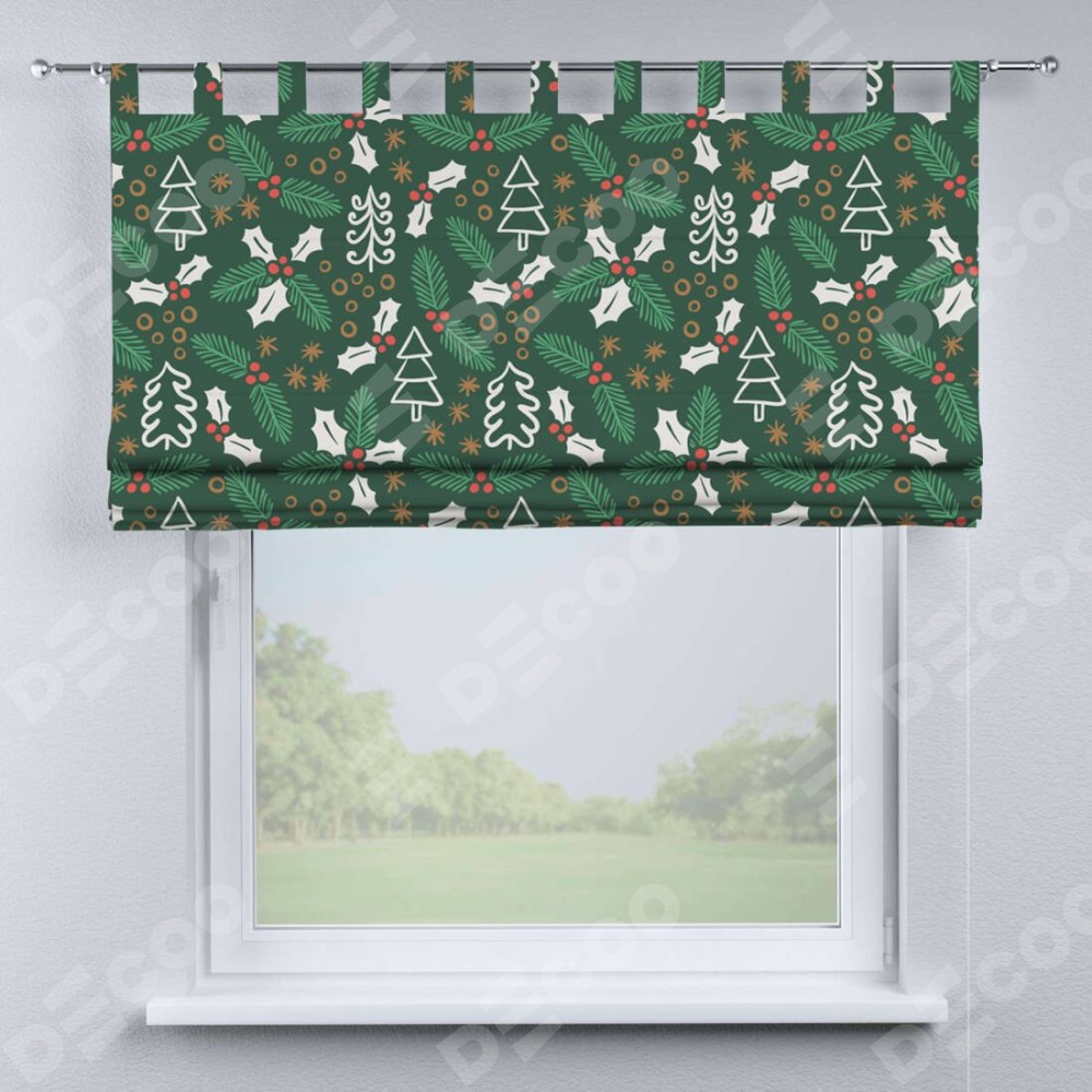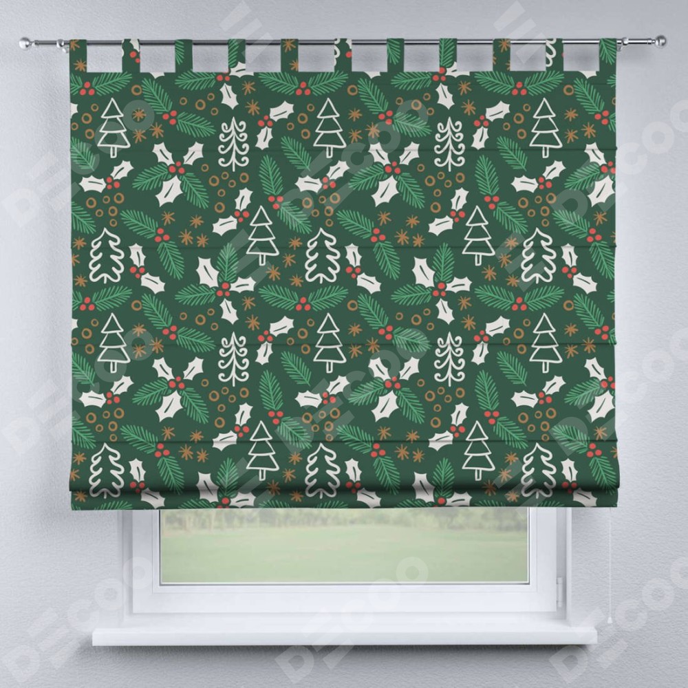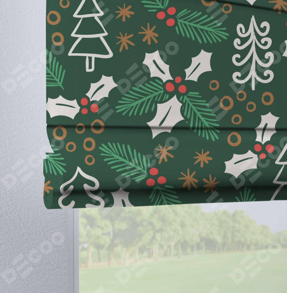Римская штора производителя «Cortin», используется для проёма, пошита из ткани блэкаут с нанесением сублимационной печати «Рождественский узор». Данная модель пошита на петлях, комплектуется на выбор круглым карнизом и подходит для монтажа на стену. Римская штора на петлях имеет простую систему регулировки высоты, отличительным преимуществом данной модели является простой способ монтажа. Достаточно повесить ее на трубу и штора готова!
