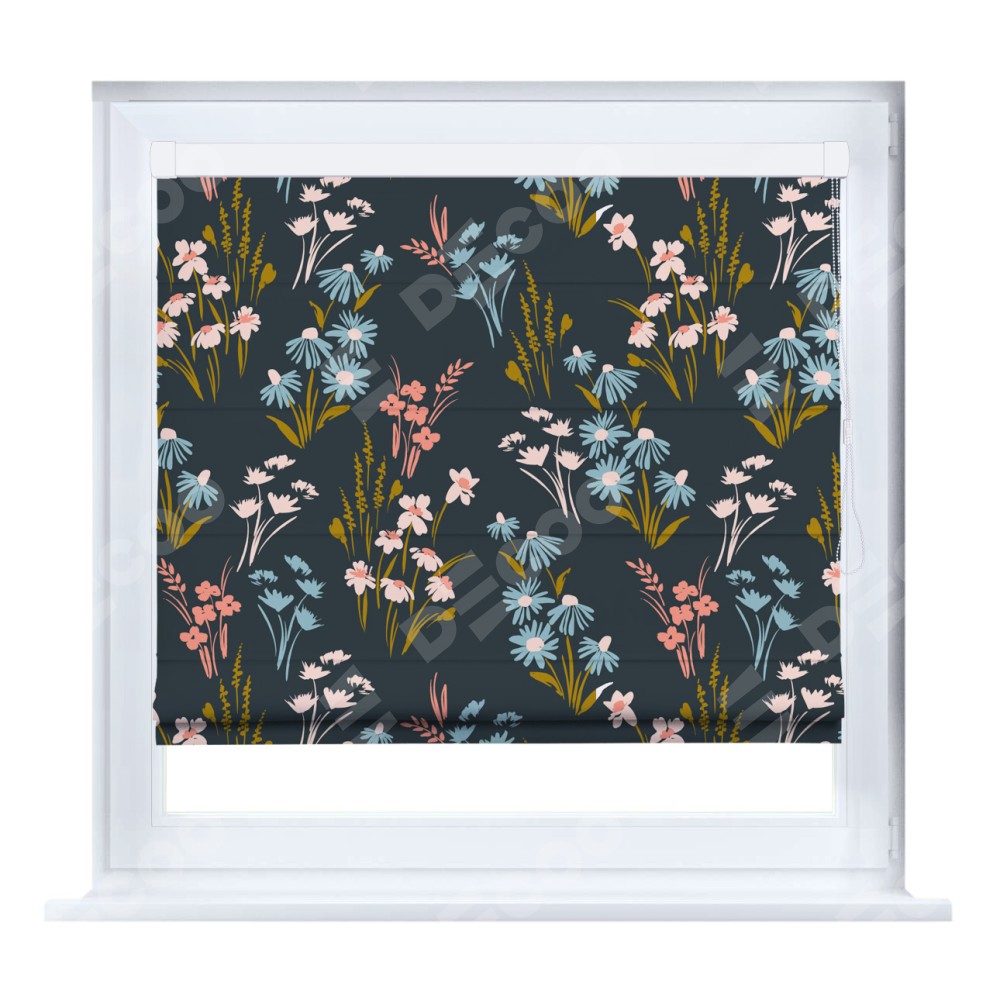 Римская штора производителя «Cortin», устанавливается на створку окна, пошита из ткани блэкаут с нанесением сублимационной печати «Чарующие цветы». Штора шьётся по индивидуальным размерам, для данного типа римской шторы возможная ширина от 35 до 150 см., высота до 250 см.