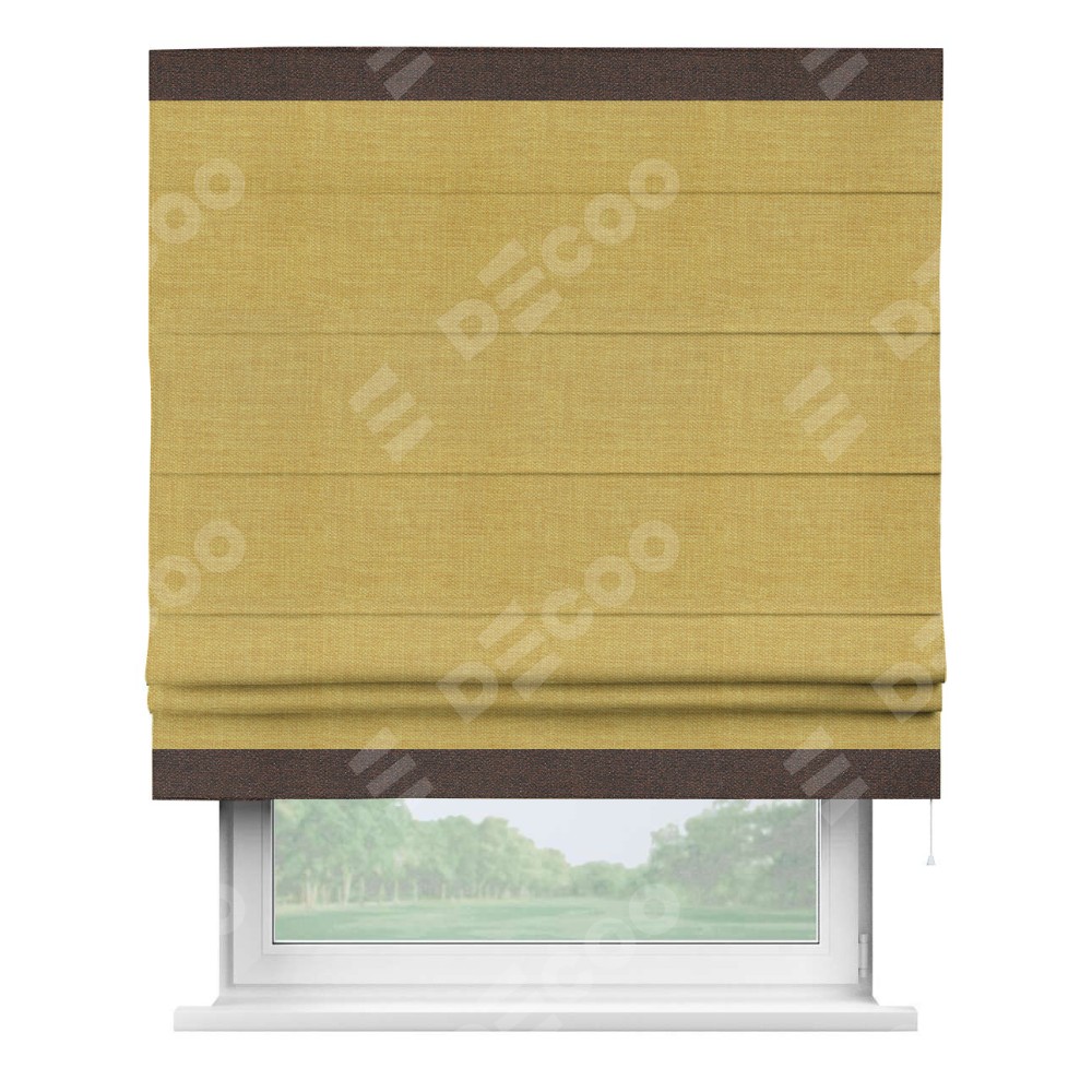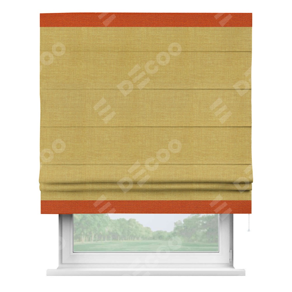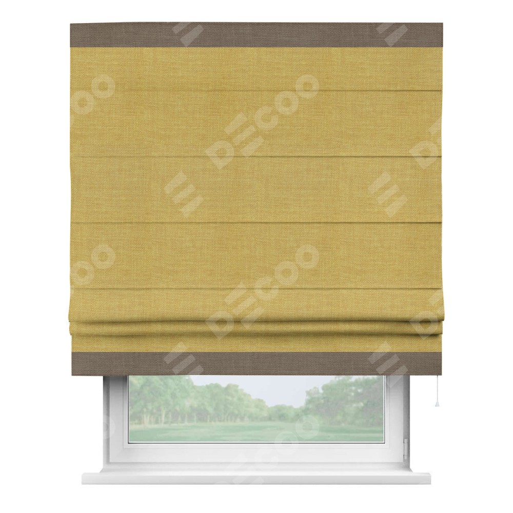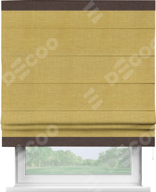 Римская штора «Кортин» с кантом Горизонт, для проема, ткань лён горчичный