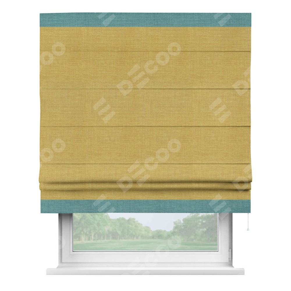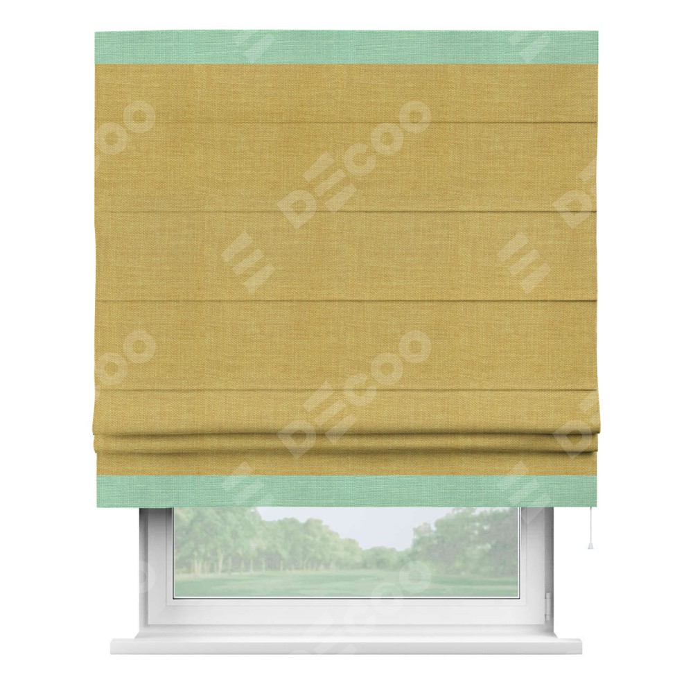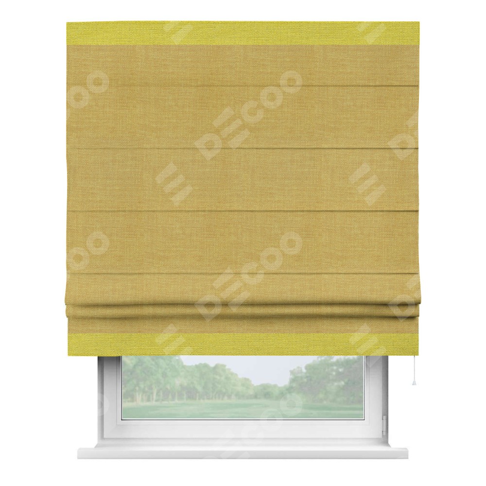Римская штора «Кортин» с кантом Горизонт, для проема, ткань лён горчичный