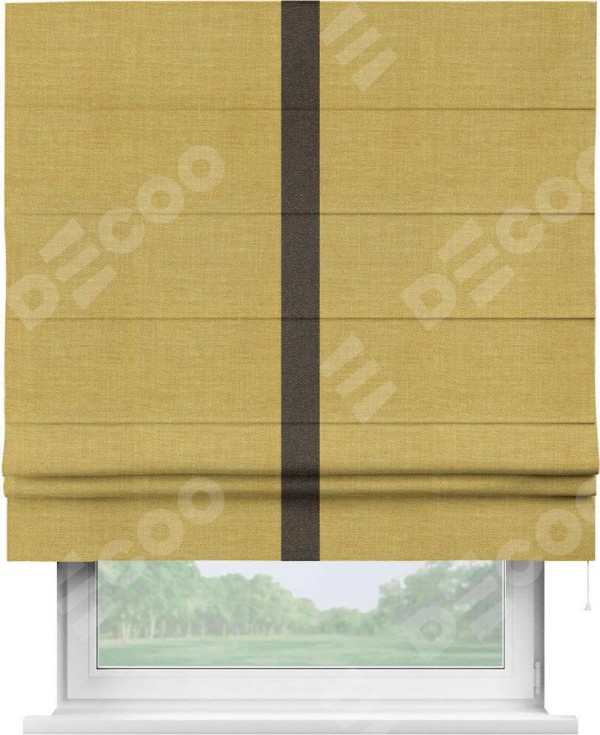 Римская штора «Кортин» с кантом Хайвэй, для проема, ткань лён горчичный