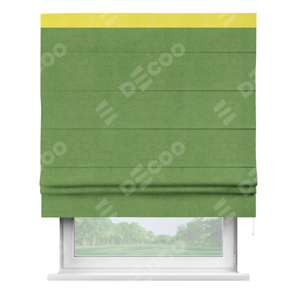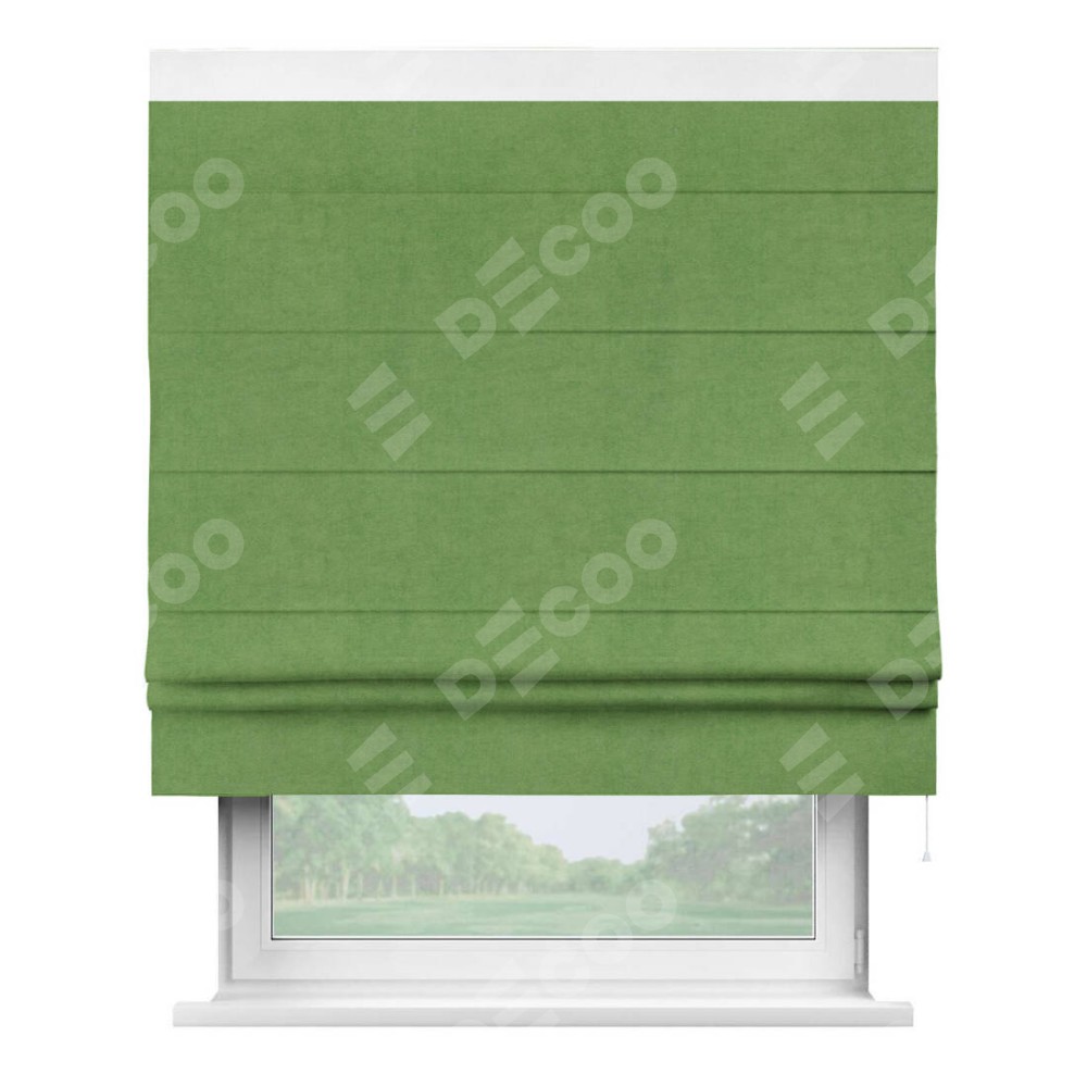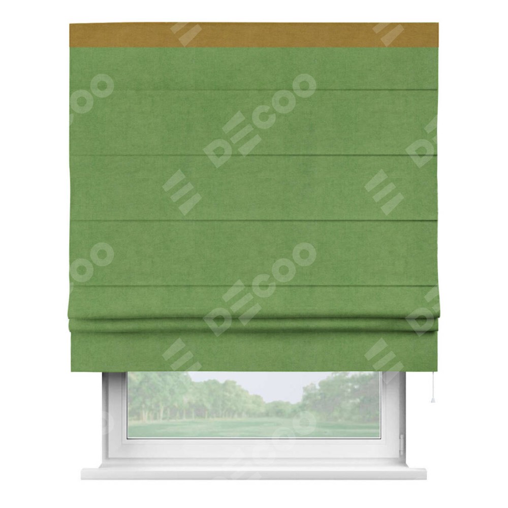 Римская штора «Кортин» с кантом Кинг, для проема, ткань вельвет салатовый