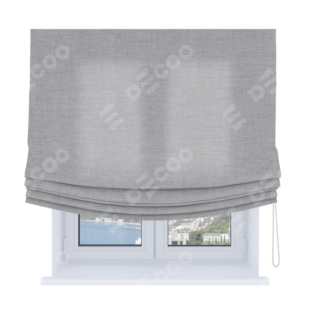 Римская штора Soft производителя «Cortin», используется для проёма, пошита из ткани лён серый, артикул ткани 7440. Имеет универсальный механизм и подходит для монтажа: на потолок, на стену и в нишу. В отличие от стандартных римских штор, римская штора Soft не имеет горизонтальных вставок и нижнего отвеса. Это позволяет ткани произвольно драпироваться в свободные мягкие складки.