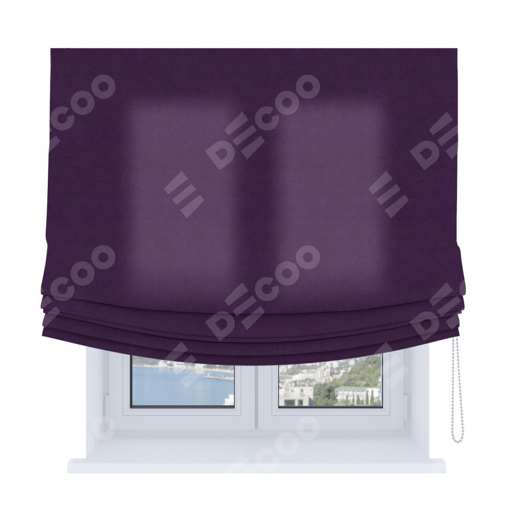 Римская штора Soft с мягкими складками, ткань вельвет тёмно-фиолетовый