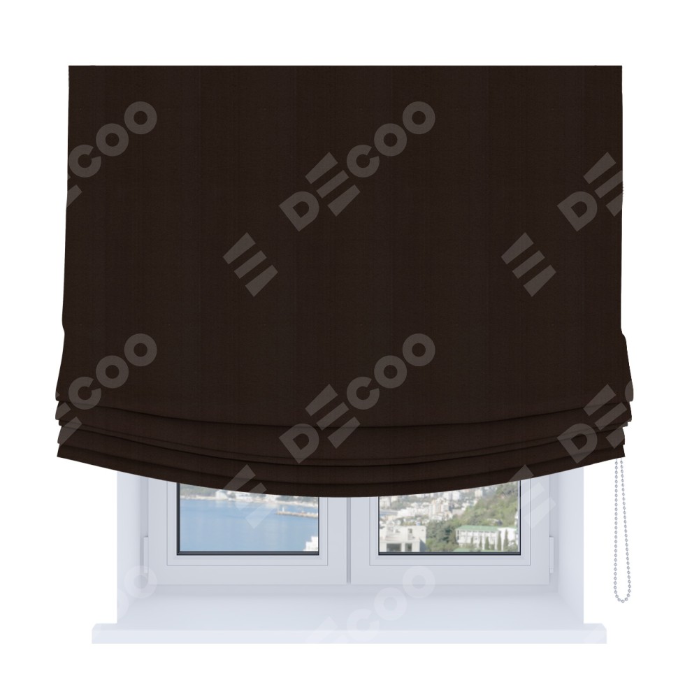 Римская штора Soft производителя «Cortin», используется для проёма, пошита из ткани блэкаут однотонный тёмно-коричневый, артикул ткани 88287. Имеет универсальный механизм и подходит для монтажа: на потолок, на стену и в нишу. В отличие от стандартных римских штор, римская штора Soft не имеет горизонтальных вставок и нижнего отвеса. Это позволяет ткани произвольно драпироваться в свободные мягкие складки.