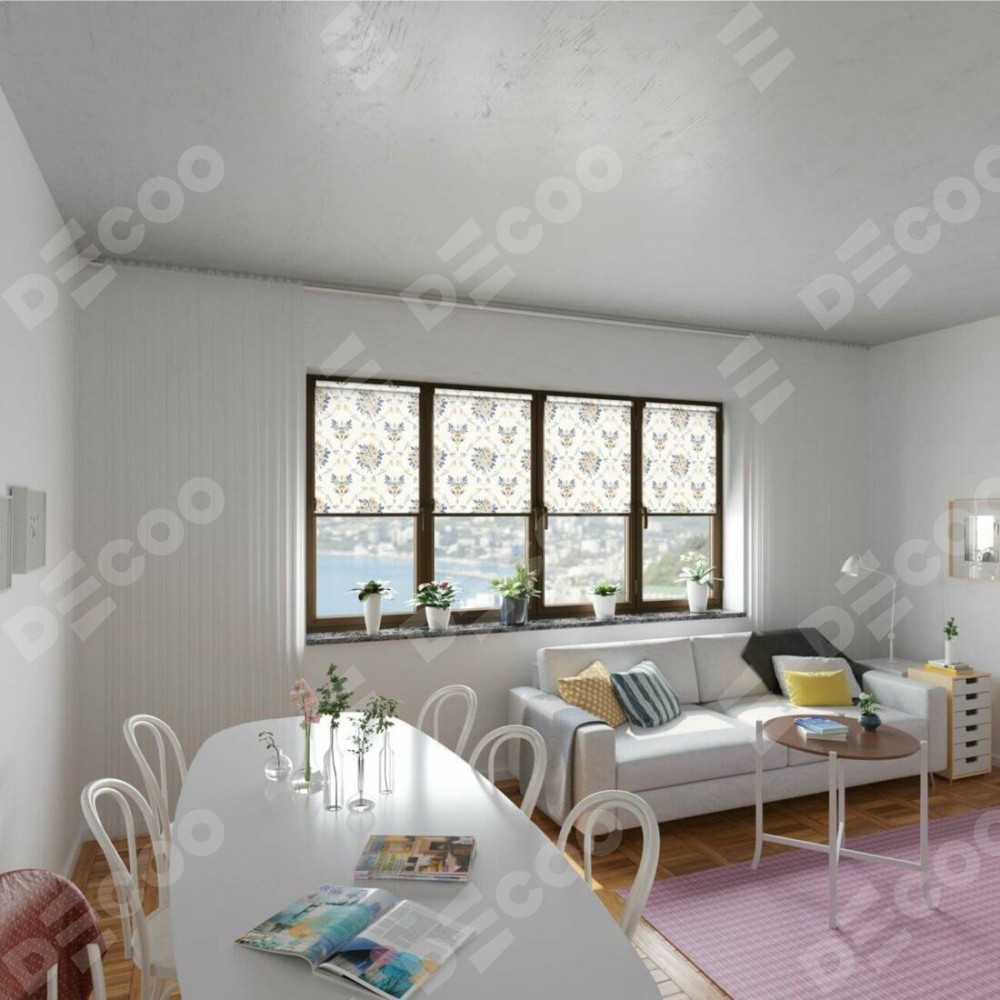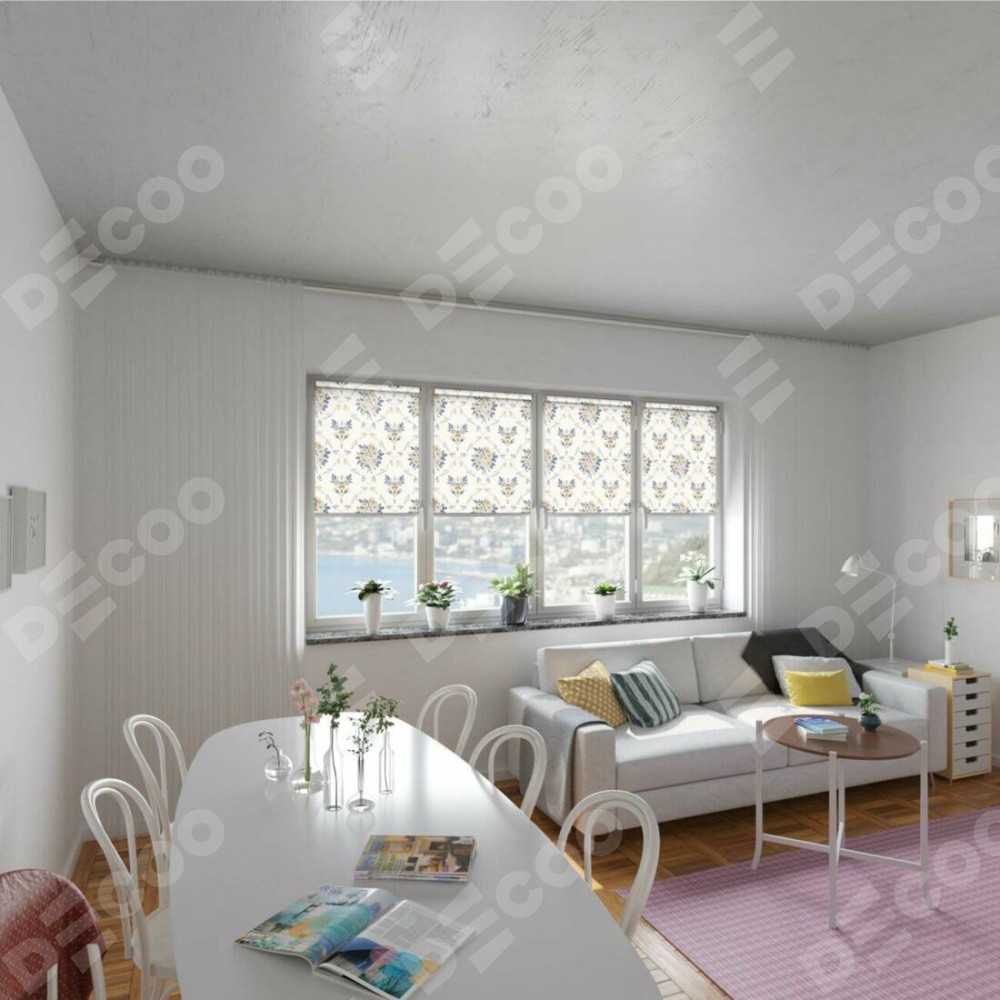 Рулонная штора Мини с принтом Французский цветок отлично подойдёт для интерьера: для общественных мест, детская и для дачи.