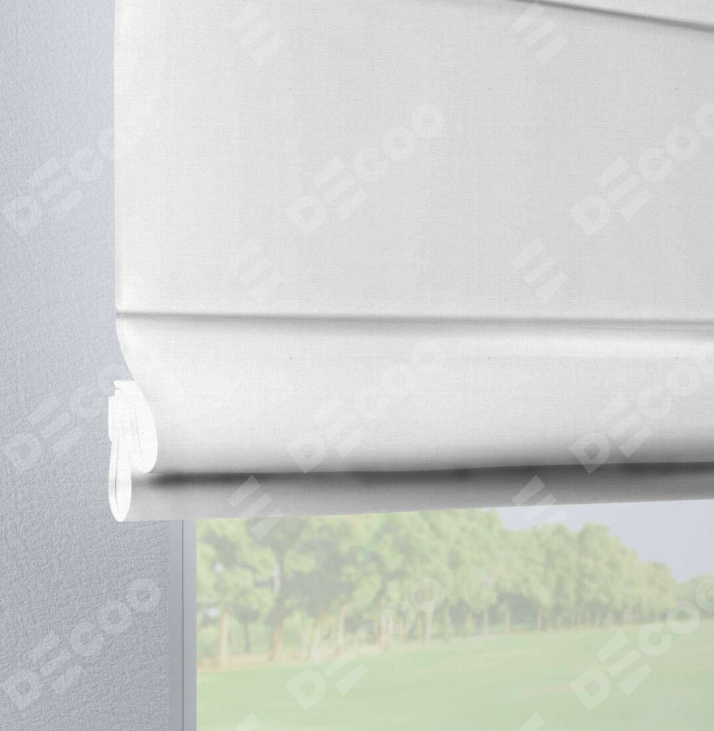 Римская штора производителя «Cortin», используется для проёма, пошита из ткани лён белый, артикул ткани 53430. Данная модель пошита на петлях, комплектуется на выбор круглым карнизом и подходит для монтажа на стену. Римская штора на петлях имеет простую систему регулировки высоты, отличительным преимуществом данной модели является простой способ монтажа. Достаточно повесить ее на трубу и штора готова!