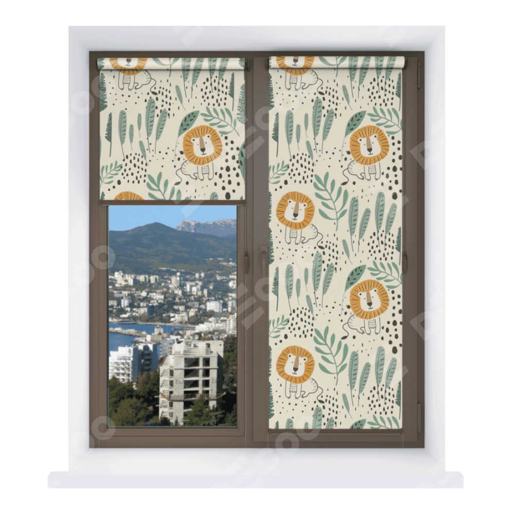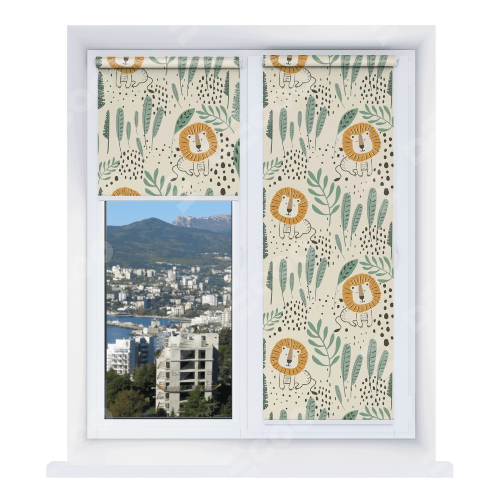 Рулонная штора Мини с принтом Лев из джунглей отлично подойдёт для интерьера: коттедж, для беседки и для любого интерьера.